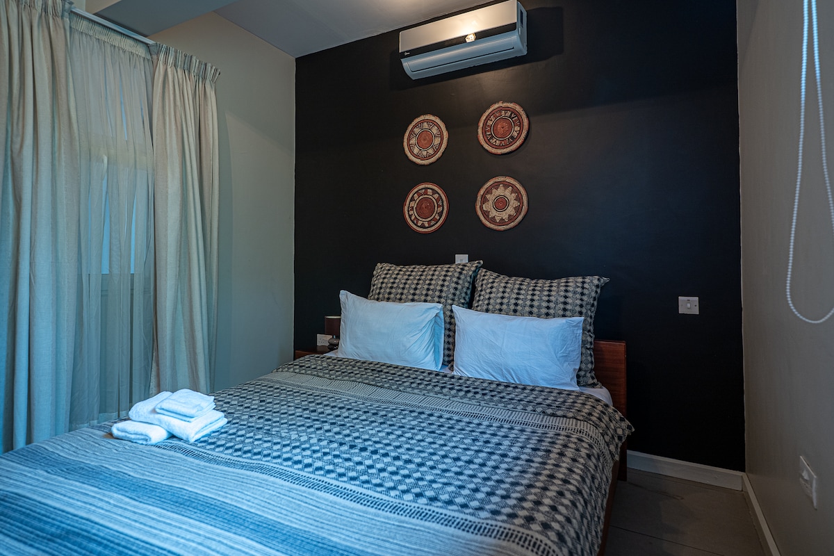 Welcome to our comfortable home in Tema! Whether you’re here for business or leisure, our gated residence in Community 2 puts you right in the heart of Tema, close to everything you need. Apartment 1 is a fully equipped, ground(US=1st)-floor unit featuring one bedroom—perfect for solo travelers, couples, or small families. Step out onto the terrace and unwind in the shaded yard, ideal for relaxing after a day out.