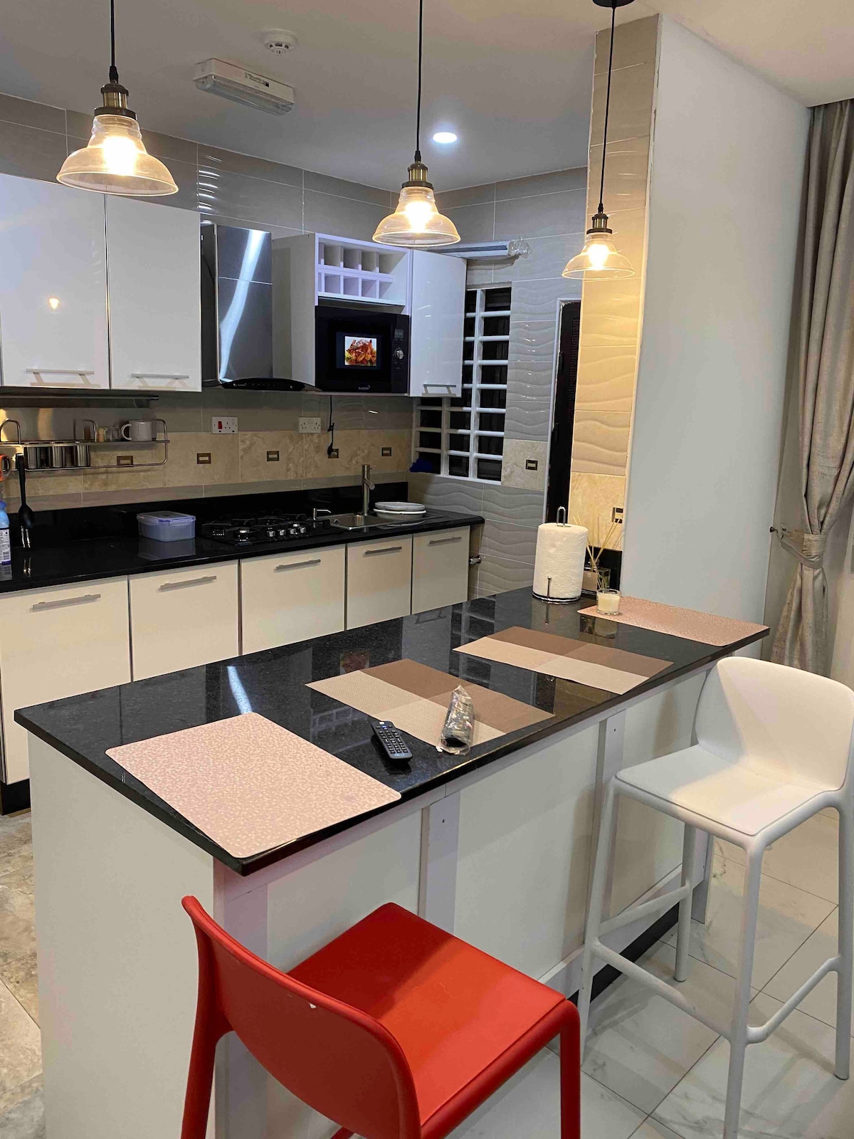 Welcome to our cozy and modern Airbnb retreat! Located in a serene neighborhood in Tema, Community 7. Our stylish two-bedroom apartment offers a relaxing escape with all the comforts of home. The open-concept living space is filled with natural light, and a fully equipped kitchen. Whether you're here for a weekend getaway, holidays or an extended stay, our Airbnb is the perfect base for exploring the city and creating unforgettable memories. Book now and experience the best of JNK HOMES.