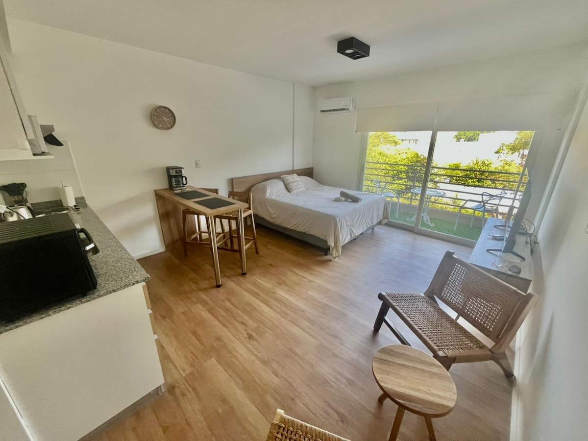 Modern apartment in the heart of Escobar with parking and prime access to the Pan-American Highway, shops, and public transport. Ideal for two, up to four with sofa bed. Includes inverter AC, 300 Mbps Wi-Fi, 4K Smart TVs with YouTube Premium and Flow, fully equipped kitchen, washing machine, and premium Piero bed. Perfect for leisure or business stays.