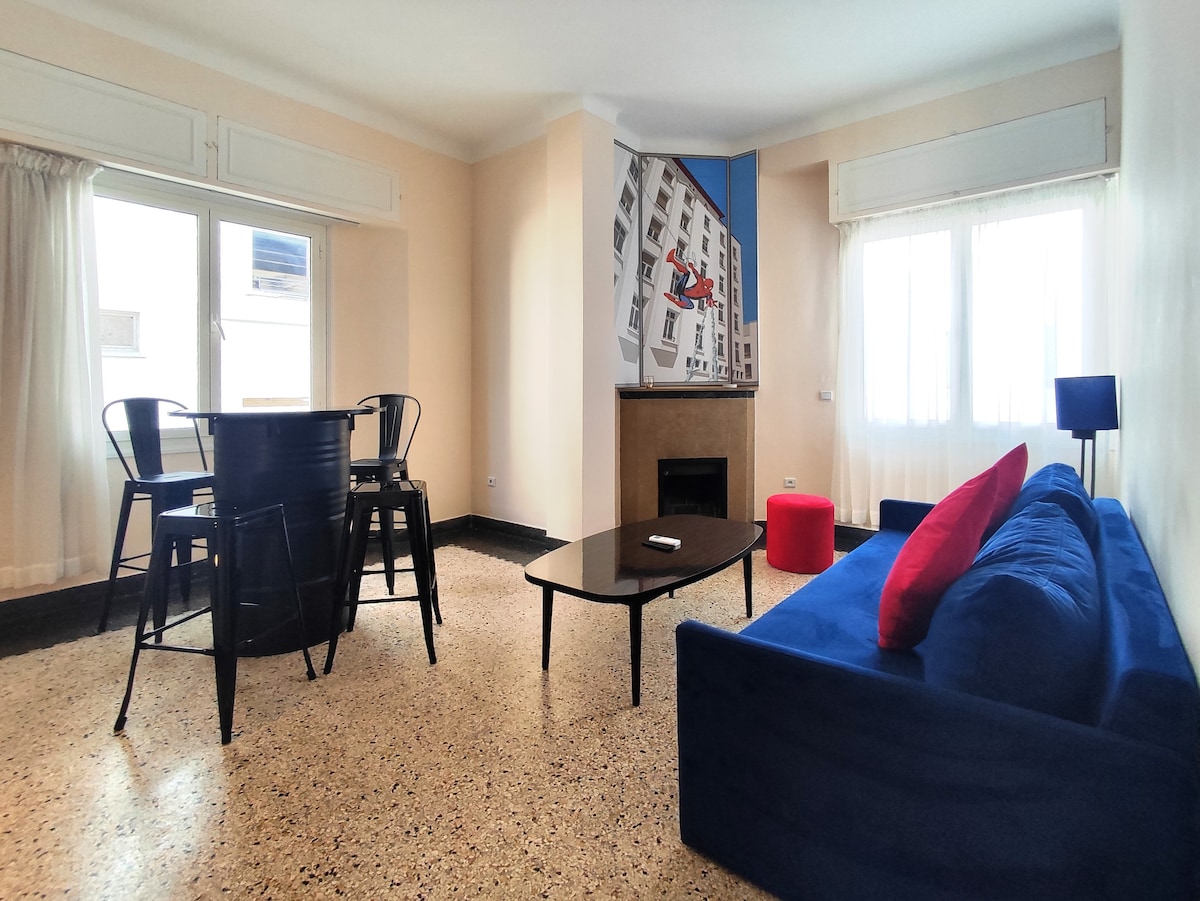 Ce logement unique est proche de tous les sites et commodités, ce qui facilite la planification de votre visite. Il se situe au deuxième étage d'un immeuble d'habitation, sans ascenseur, confortablement rénové comme une suite 4*, ce sublime deux pièces a connu la touche décorative de l'illustrateur Adil El Meslouhi (Illustradil) sur le thème des super héros sauvant le mythique Hôtel Balima qui est en face.