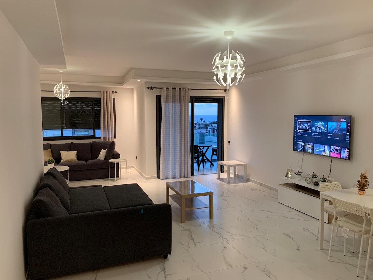 Découvrez notre luxueux appartement à Bouznika Costabeach parfait pour les familles, où les voyageurs d'affaires. Ce logement moderne de 2 chambres comprend un salon élégant avec trois télévisions, Wi-Fi fibre optique, un espace de travail et une cuisine entièrement équipée. Profitez des deux terrasses, de la climatisation et des commodités de la résidence avec piscine, parking et sécurité 24h/24. À quelques pas de la plage et des attractions locales. Réservez pour un séjour exceptionnel !