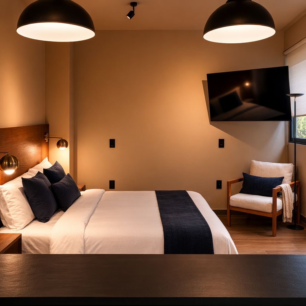 Disfruten de vistas panorámicas desde cada espacio: la terraza-comedor suspendida sobre el lago, la sala con ventanales, el comedor y la cocina integral. Este departamento de diseño contemporáneo para parejas incluye suite con cama King, sofá cama y detalles de lujo. Relájense en la alberca del edificio y experimenten amaneceres espectaculares y cenas bajo las estrellas. Un espacio donde el lago se convierte en el centro de cada momento inolvidable. Vive una experiencia única.