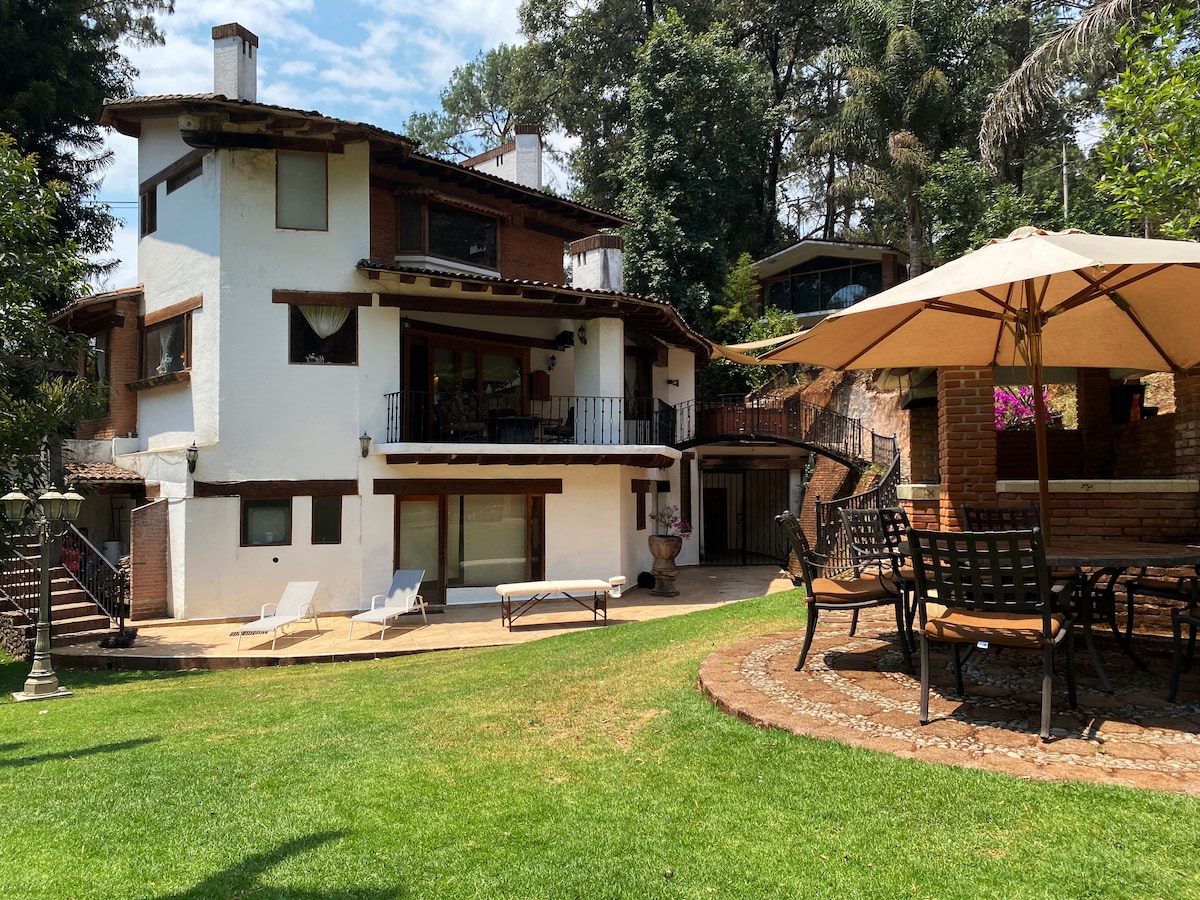 Increíble casa en el bosque, en privada de 3 casas con cancha de Pádel. Está rodeada de árboles, un pequeño jardín, un laguito, alberca y jacuzzi. Cuenta con comedor en terraza techada, sala c/chimenea, sala exterior, cocina abierta c/barra, horno de pizzas, 4 cuartos principales, cuarto de servicio y 6 baños. Ideal para vacaciones en familia, hay actividades para todas las edades. Por lo mismo, está estrictamente prohibido hacer ruido en exteriores después de las 22hrs