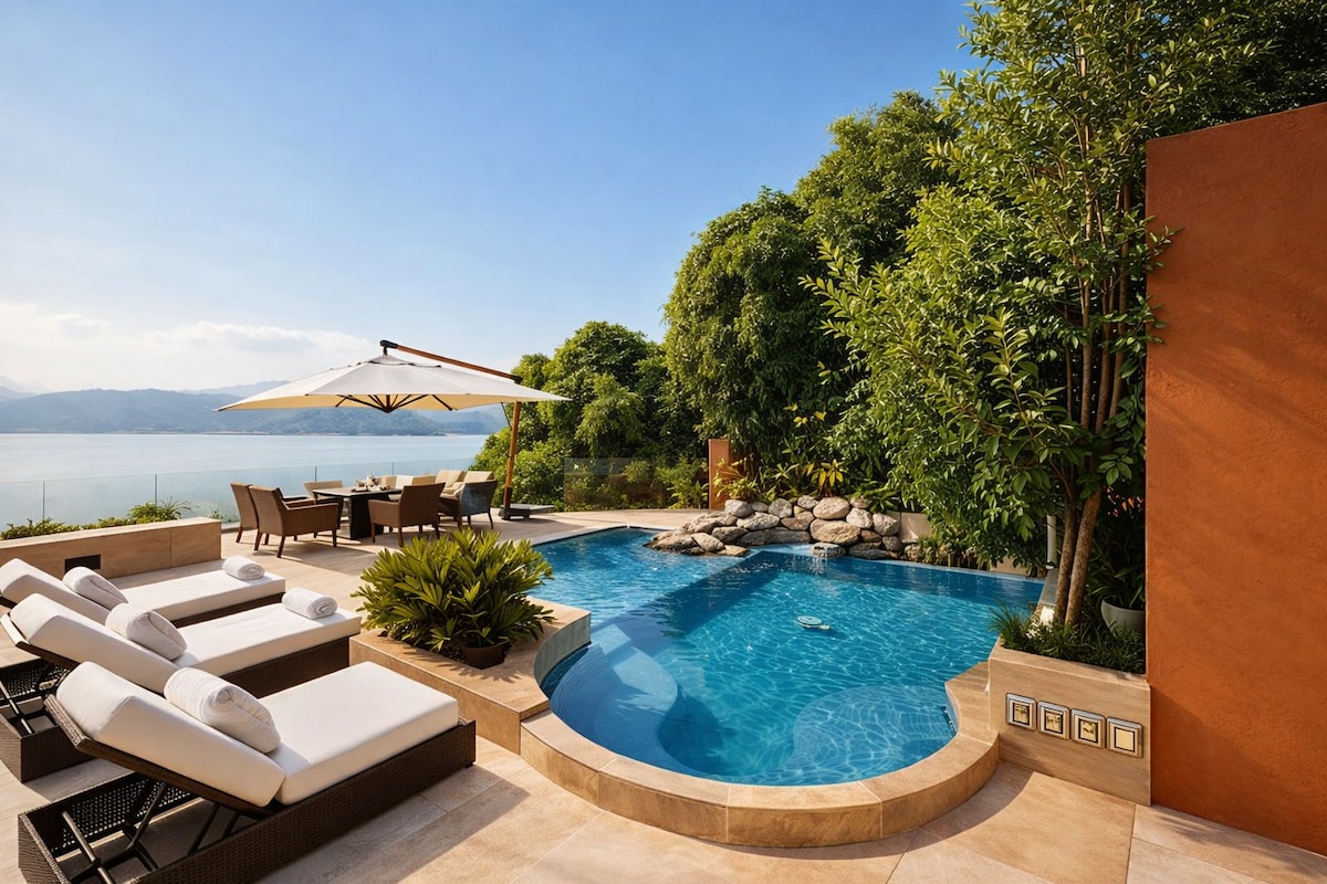 迷人的日落湖景别墅,带私人泳池和水疗中心