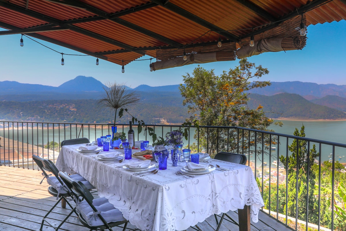 Escape to this beautiful lakeview home in the most exclusive area of Valle de Bravo: La Peña. Enjoy a private pool, terrace, and jacuzzi with night lighting, surrounded by gardens, trees, and nature. Just a 10-minute walk to the dock for water sports and a free private boat taxi to explore the lake. Close to paragliding, ATVs, hiking, horseback riding, waterfalls, and the Monarch Butterfly Sanctuary. The house includes a fireplace, Sky TV, WiFi, cook service, secure parking, and total privacy.