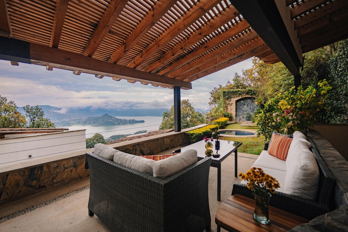 Departamento con excepcional vista panorámica, terraza propia y acceso a la PB con Pérgola, amplio jardín con alberca, jacuzzi, sala y comedor exterior, con Asador y refrigerador, tumbonas para asolearse, acceso al lago con kayaks y standup paddles incluidas.