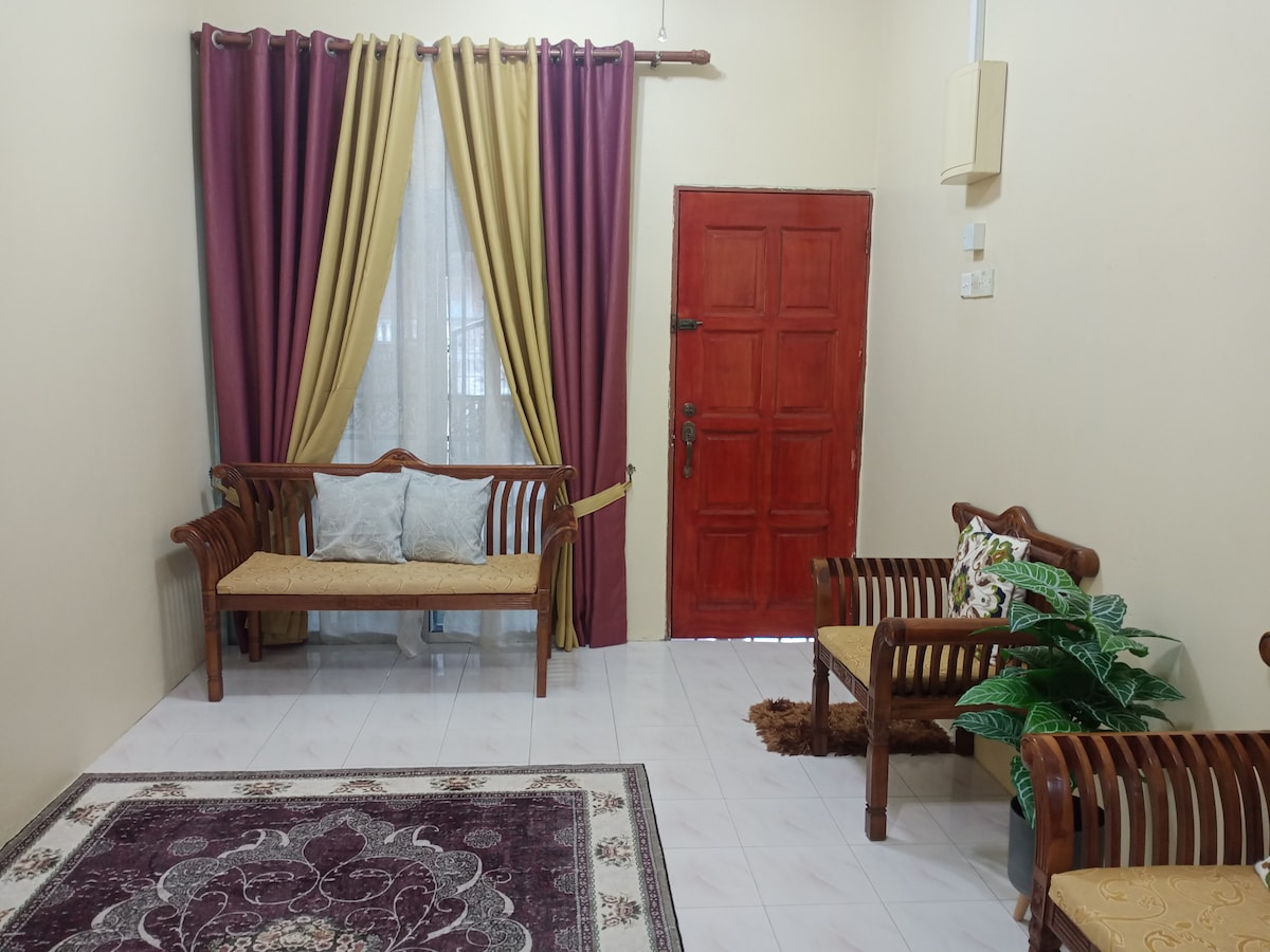 Bring the whole family to this great place with lots of room for eun 100% MUSLIM HOMESTYA and for MUSLIM ONLY Living Hal with Air-conditioning 3bedroom Master bedroom -Queen bed with conditioning + with fan 2nd bedroom -Queen bed +with fan 3rd bedroom -Single bed + with fan Television Dining area Washing machine One toilet Also provide shower gel,shampoo Kitchen Parking