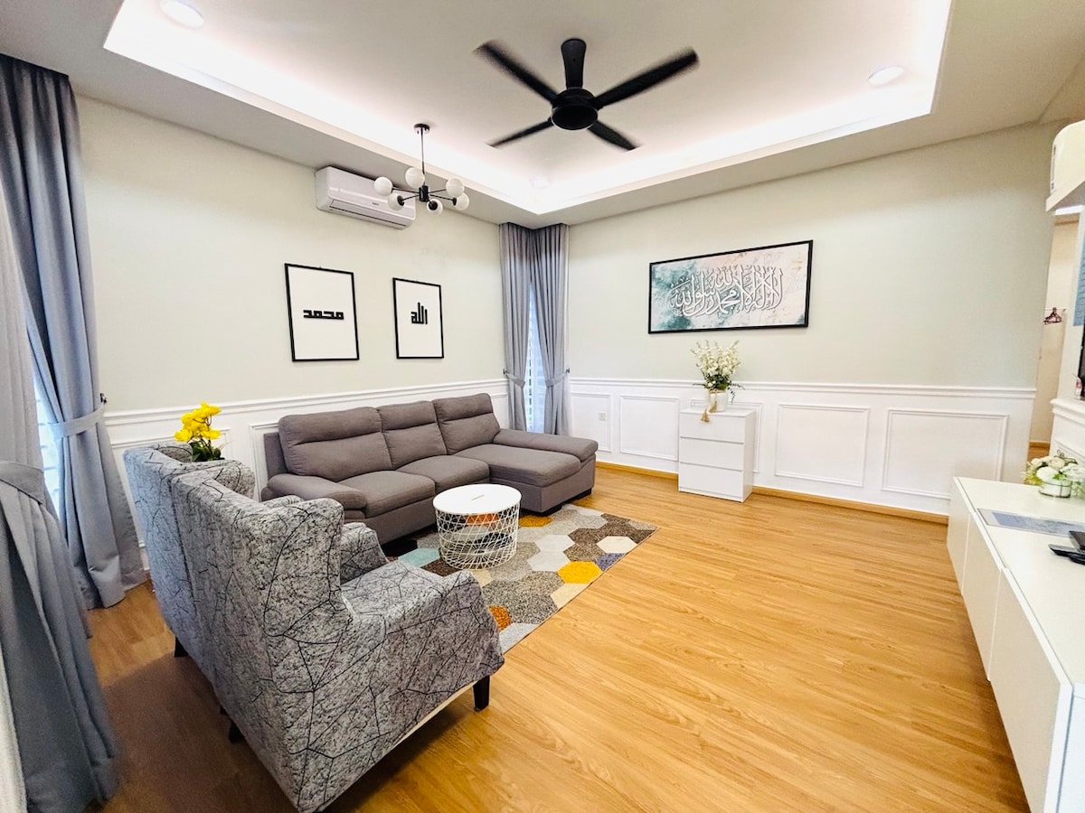 Bring the whole family to this great place with lots of room for fun. 100% MUSLIM HOMESTAY and for MUSLIM ONLY Living hall with Airconditioning 4 bedroom Master bedroom - King bed with airconditioning + toilet +Water heater 2nd bedroom - Queen bed with airconditioning + toilet sharing with 3rd bedroom 3rd bedroom - Queen bed with airconditioning + toilet sharing with 2nd bedroom 4th bedroom - Single bed with airconditioning + toilet Also provide shower gel, shampoo kitchen parking