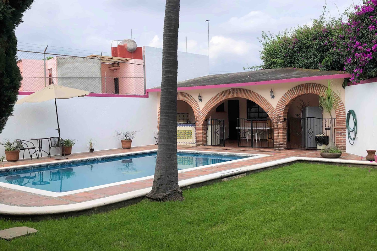 Increíble casa en una de las mejores zonas de Cuernavaca. En esta casa se respira la tranquilidad. No hay ningún ruido del exterior, más que los de la naturaleza. Cuenta con un hermoso jardín y una amplia área de piscina con camastros. La casa está completamente equipada con aire acondicionado, wifi, televisión, netflix, etc. Es el lugar ideal para relajarte!! Dentro de la propiedad hay otra casa, sin embargo son completamente independientes y se respeta la privacidad de cada una.