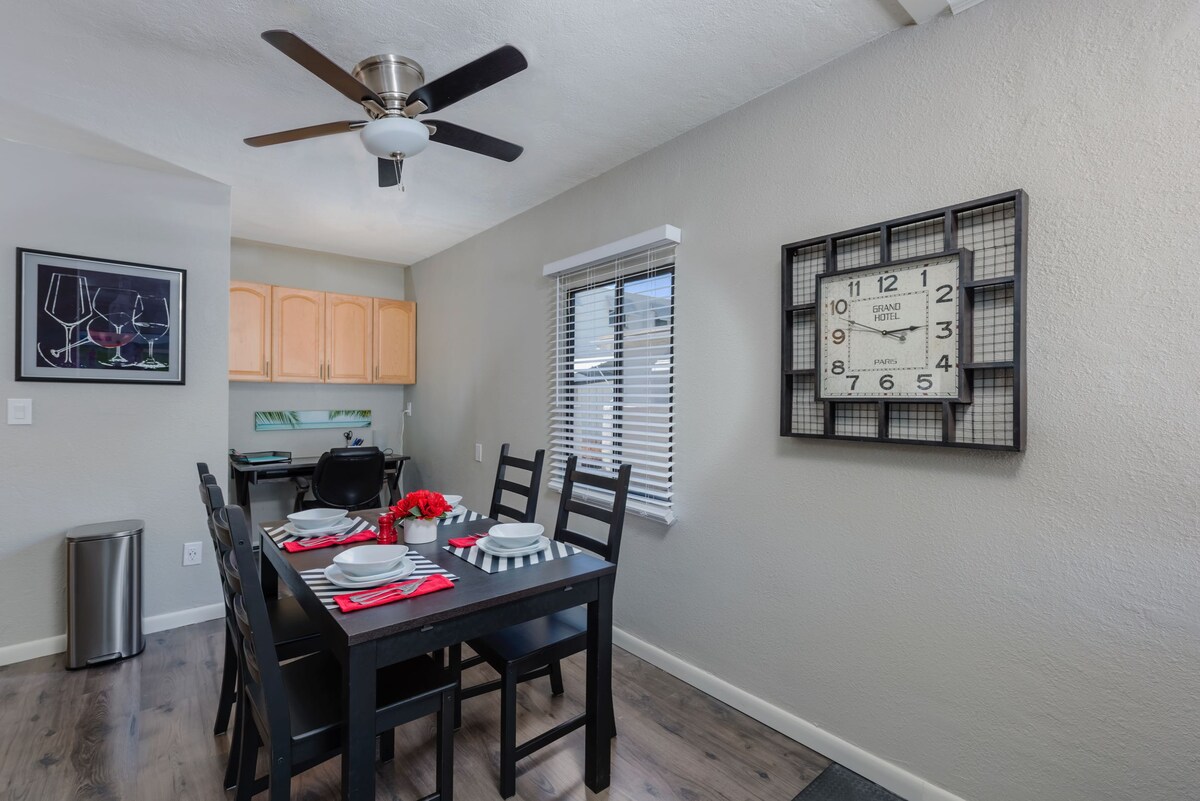 Reliably operated by a top AZ Superhost with 4,400+ 5 star stays. A TRUE find! Best location in Tempe - walkable to downtown, bars and restaurants on Mill, ASU (1.5 miles), Tempe Beach Park, etc. Hidden-away historic guest house with a private yard (and even a secret outdoor 2nd shower). Professionally designed and setup with guest comfort in mind - everything is here for you - premium bed, a dedicated workstation, fully stocked kitchen, an outdoor seating space with bistro lights. INCLUDED 👇