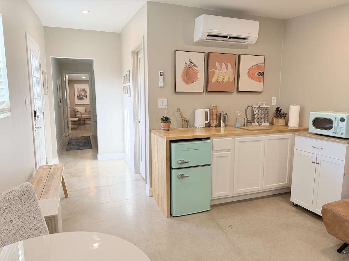 Welcome to the tropical soirée! Escape to a piece of paradise equipped with everything you need for your stay. We offer a fully stocked kitchenette, a private outdoor bistro table and a shared courtyard with a large fire pit. Hop on one of our two beach cruisers and ride down to the movie theaters, brunch and dinner spots only 5 min away! This will truly be your favorite spot to either relax, explore or to stay while traveling for business. We look forward to hosting you!