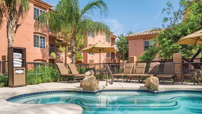 Find your perfect Southwestern escape at Scottsdale Villa Mirage, comfortably set in the scenic Arizona landscape and distinctively decorated with traditional desert charm. Scottsdale Villa Mirage offers the ideal desert retreat. You’ll find all the comforts of home while enjoying the resort’s amenities, including an outdoor pool and hot tub, children’s pool, fitness center and tennis courts. Test your swing on one of the many nearby golf courses or soak up the seemingly endless sunshine.