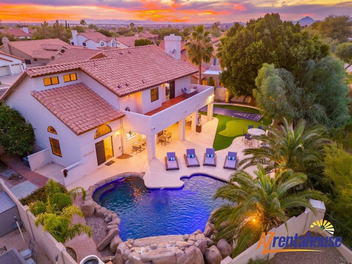 🏖️ Ask about our Heated Pool! 🏝️ Indulge in a remarkable Scottsdale retreat, offering an unforgettable vacation! Nearby, explore Old Town, Fashion Square, Stadiums, and Golf. Immerse in the outdoor oasis with a putting green, pool, yard games, and a bar. Your dream getaway beckons! *Pool heating requires additional cost of $60/day with a $200 per stay minimum. $75/ day Dec - Feb Please inform us upon booking if you intend to have pool heated. TPT#: 21442315 Rental License #: 2042019