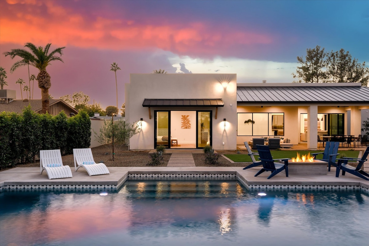 Your ultimate destination for AZ adventures. Modern luxury villa just a 9-min drive from heart of Scottsdale. Relax in the private pool or spacious backyard with outdoor dining area, lounge seating, and gas grill. Create elaborate meals in the gourmet chef’s kitchen, complete w/ fully stocked auto espresso machine. Whole group will be entertained with huge game room: pinball machine w/ 337 games, sit-down auto racing, foosball, ping pong, pop shot basketball & more! 3.5 miles from DT Scottsdale.