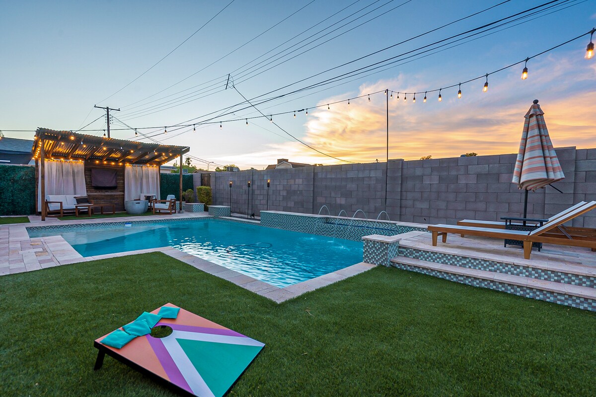 BRAND NEW Beautiful remodeled 3 bedroom house with resort style backyard, only minutes from Old Town Scottsdale! Free Heated Pool, Hot Tub, Fire Pit, Mini Golf, Ping Pong, Cornhole + fastest wifi and smart tv's! The house is fully stocked with a complementary coffee bar, outdoor bbq, and the most beautiful turf for the whole family to enjoy! Read More Below!