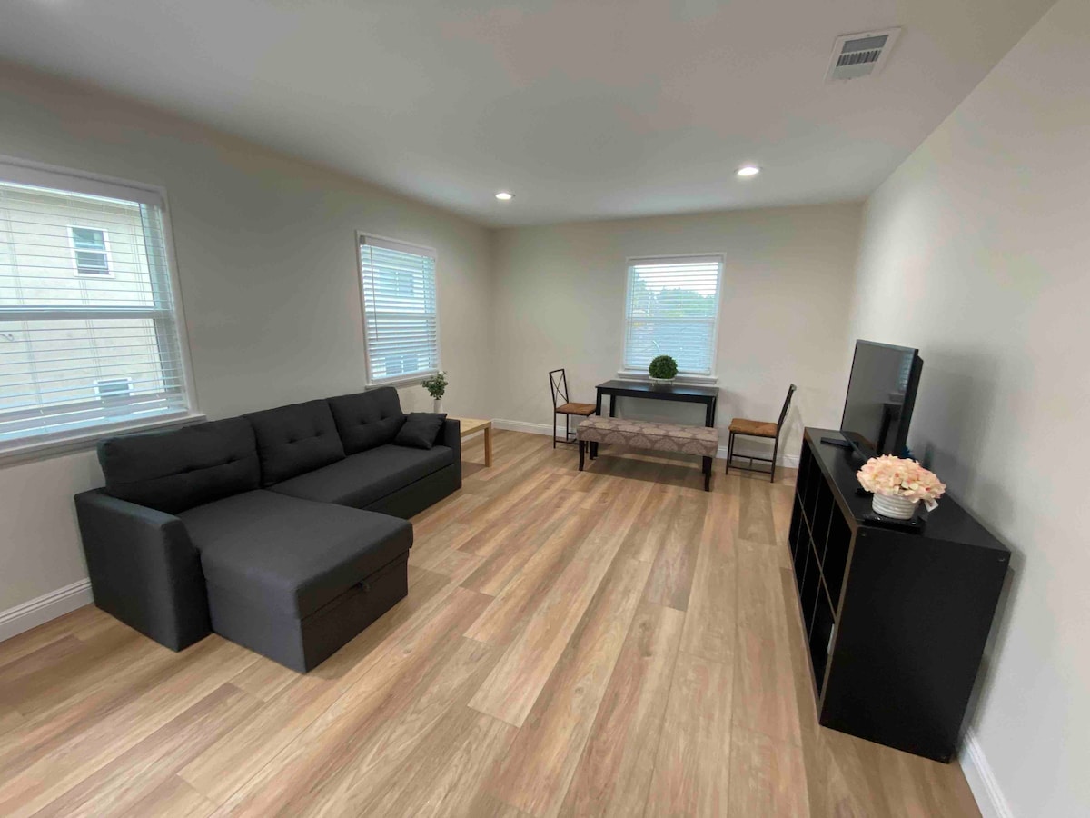 Brand new renovated, private apartment at a great location. Only minutes away from eateries/stores. 2 rooms, 2 queen beds, 1 full-size sofa bed, ideal for 4 guests. Will fit up to 6 guests but will be snug. Enjoy a movie in living room. Full kitchen for some light cooking and dining. -Refrigerator -Microwave -central A/C & heat -WIFI -Uncovered parking We welcome long-term stay. NO parties or pets. NO SMOKING or drugs of any kind, on or near premise.
