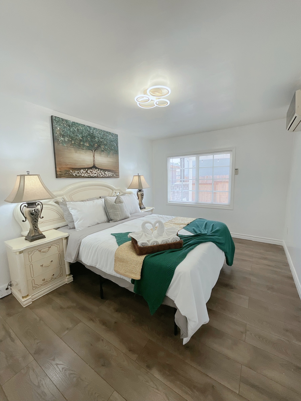 This cozy guest suite with private entrance from the back yard, 1 Queen size bed,brand new bathroom, brand new kitchenette for basic cooking, brand new split air conditioner, free gate parking on premises, fast internet and self check in with keypad lock, Just add the brand new TV with free Netflix