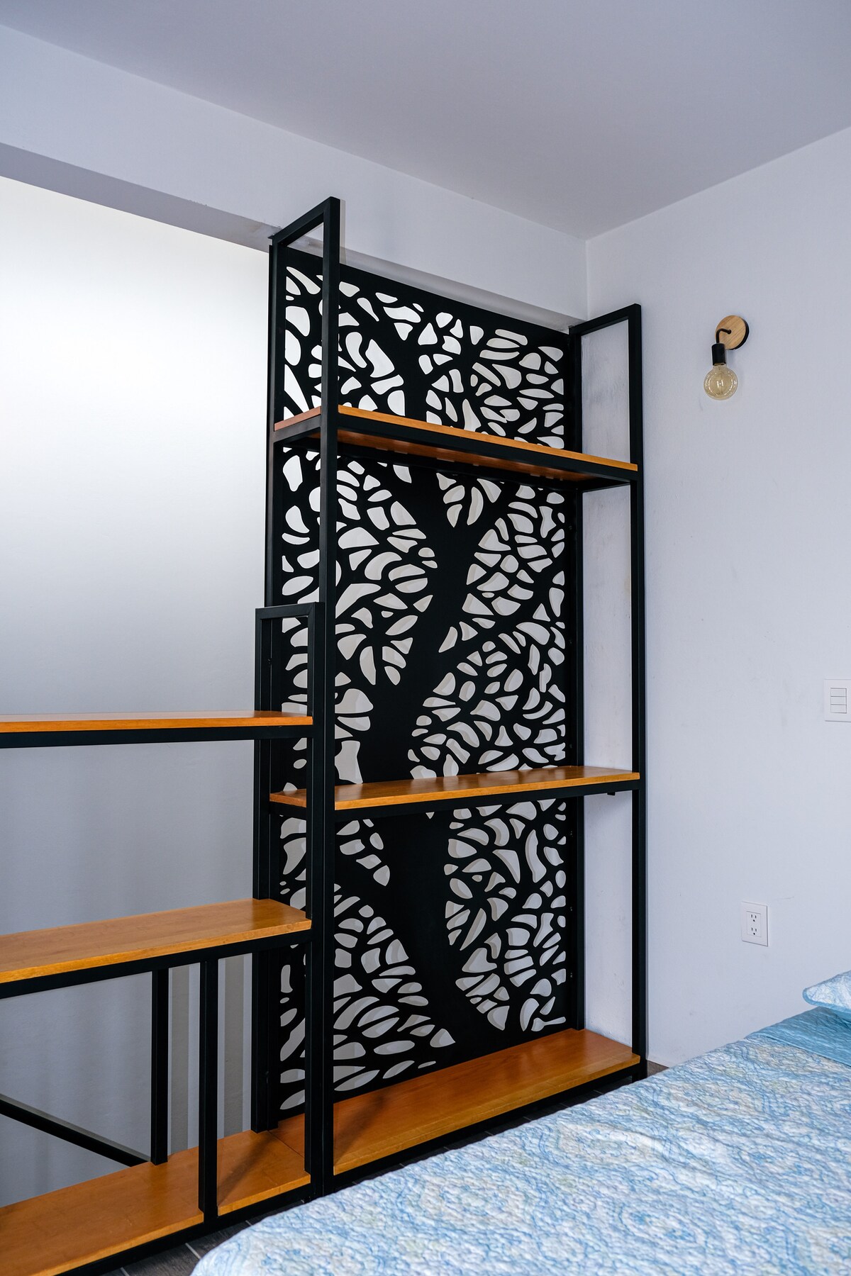 Disfruta del fácil acceso a todo desde este alojamiento perfectamente ubicado y que brinda una estancia tranquila y confortable. El departamento tiene en la planta baja la estancia con sillón, mesa de comedor para dos personas, cocina y baño completo con regadera; escaleras tipo caracol para subir a la planta, donde se encuentra la recamara con cama, closet, aire acondicionado y cortinas blackout, desde ahí se accede a la terraza semi-privada con dos sillas para exterior y sombrilla.