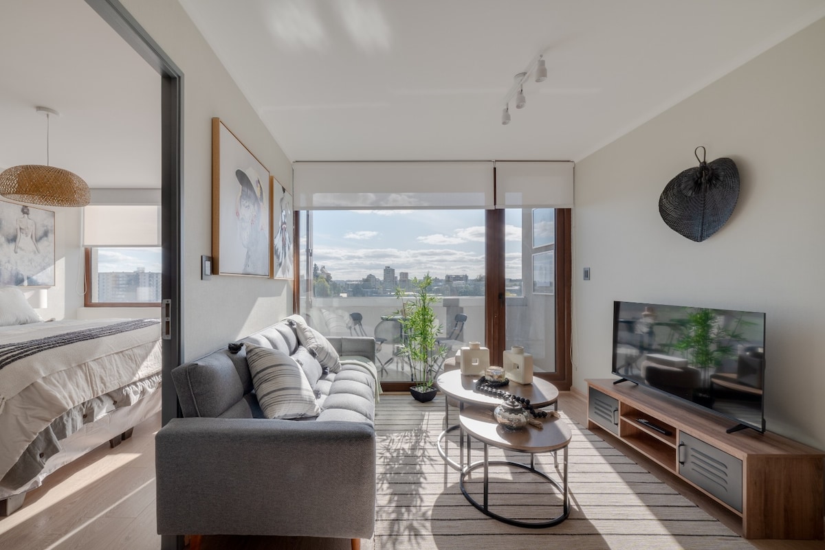 Disfruta una estadía cómoda y sin preocupaciones en este estudio full equipado, diseñado para descansar y aprovechar la ciudad. Luminoso, con balcón privado ideal para relajarte, excelente luz natural y espacios cuidadosamente preparados. Cuenta con parking incluido, wifi estable y todo lo necesario para estadías cortas o largas. Perfecto para viajes de trabajo o escapadas, con fácil acceso a servicios, comercio y puntos clave de la ciudad.