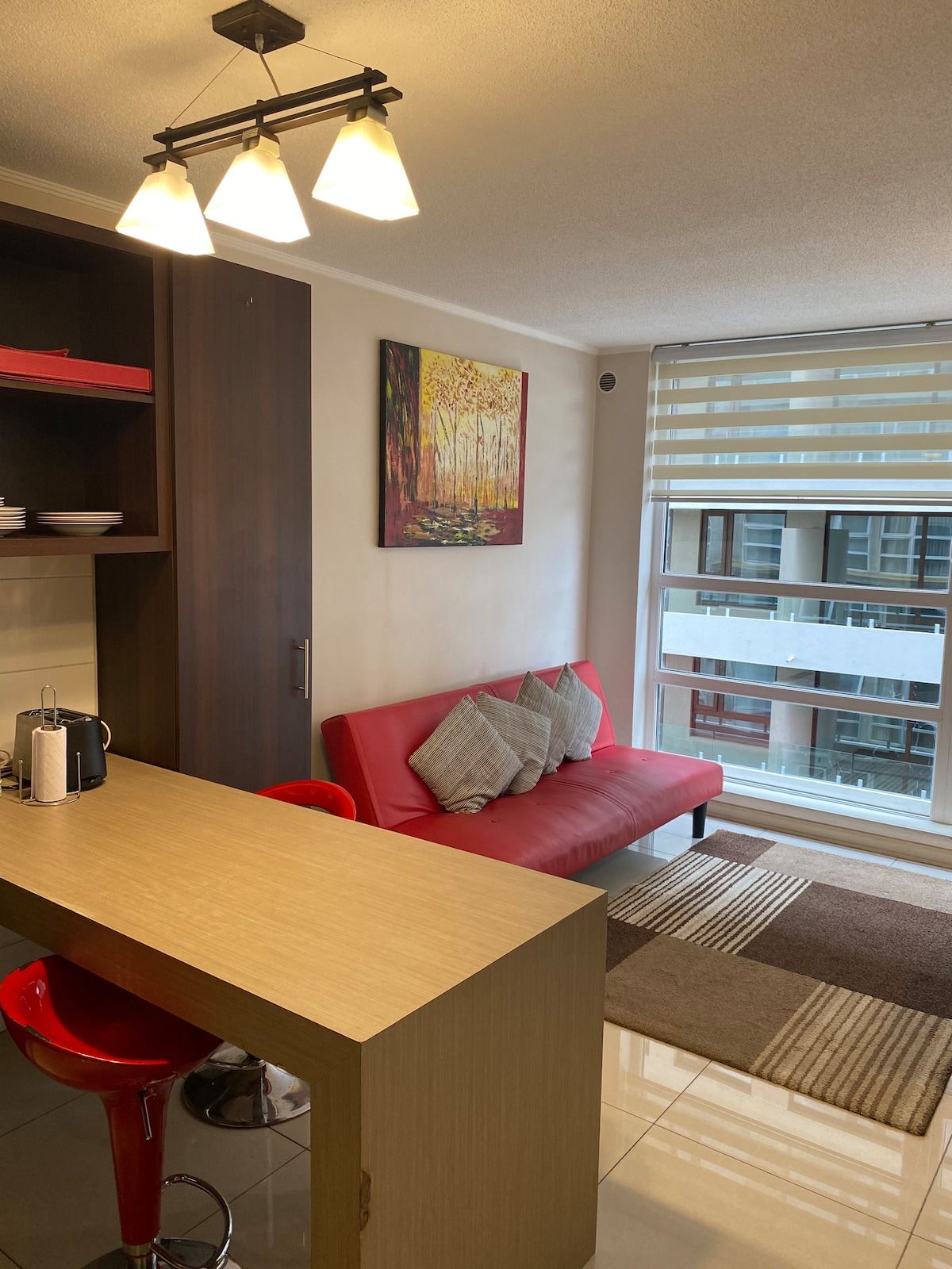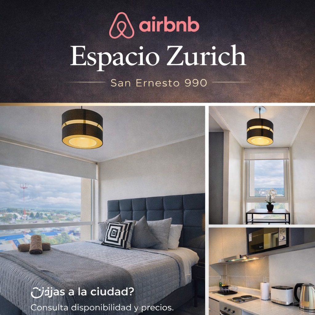 Disfruta tu estadía en un moderno departamento tipo estudio en pleno Temuco. A pasos de Av. Alemania, rodeado de cafés, bares, mall Portal, clínicas, universidades y Casino Dreams. Diseñado exclusivamente para dos personas, cuenta con cocina equipada, WiFi ideal para Home Office, baño privado y balcón. Estacionamiento frente a conserjería, sujeto a disponibilidad. Acceso controlado 24/7, cercanía, confort y estilo. ¡Te esperamos!
