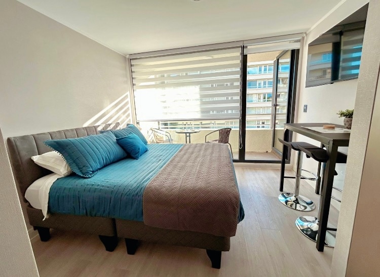 Ven a relajarte en un cómodo y luminoso estudio exclusivo para dos personas, ubicado en una de las mejores zonas de Temuco. A pasos de Av. Alemania, con acceso rápido a restaurantes, centros médicos, mall Portal y entretención. Totalmente equipado para que trabajes o descanses: cocina funcional, baño privado, balcón y WiFi de alta velocidad. Estacionamiento disponible frente a conserjería (sujeto a disponibilidad). Seguridad 24/7. ¡Haz tu reserva y siéntete como en casa!