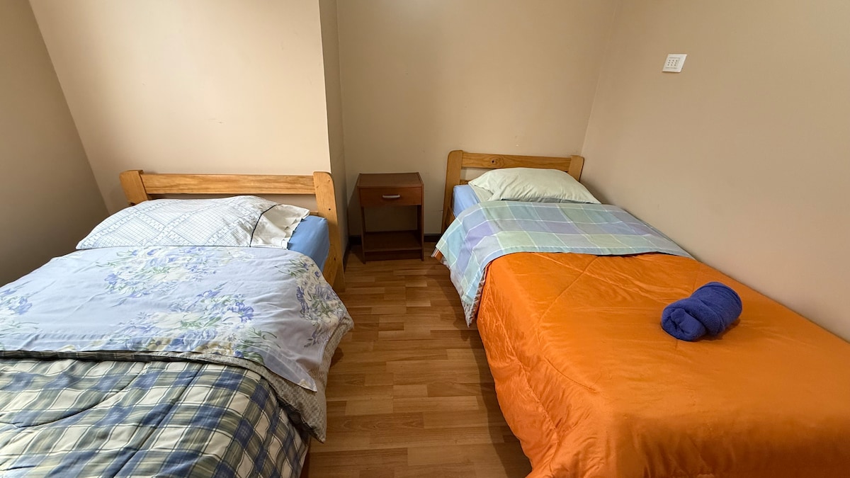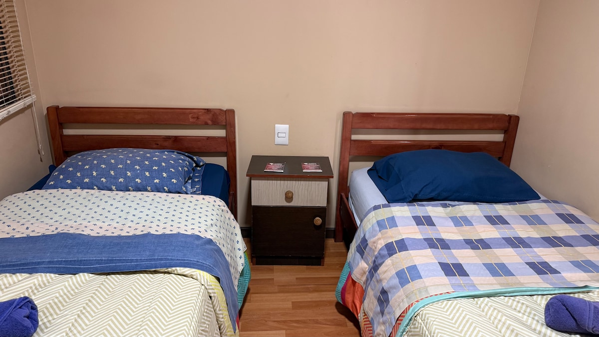 Cómoda habitación para 2 personas, camas individuales, con desayuno incluido, a pasos del Rodoviaro (terminal de buses intercomunales) de Temuco. Tiene 2 baño completos que son compartidos con otras habitaciones.