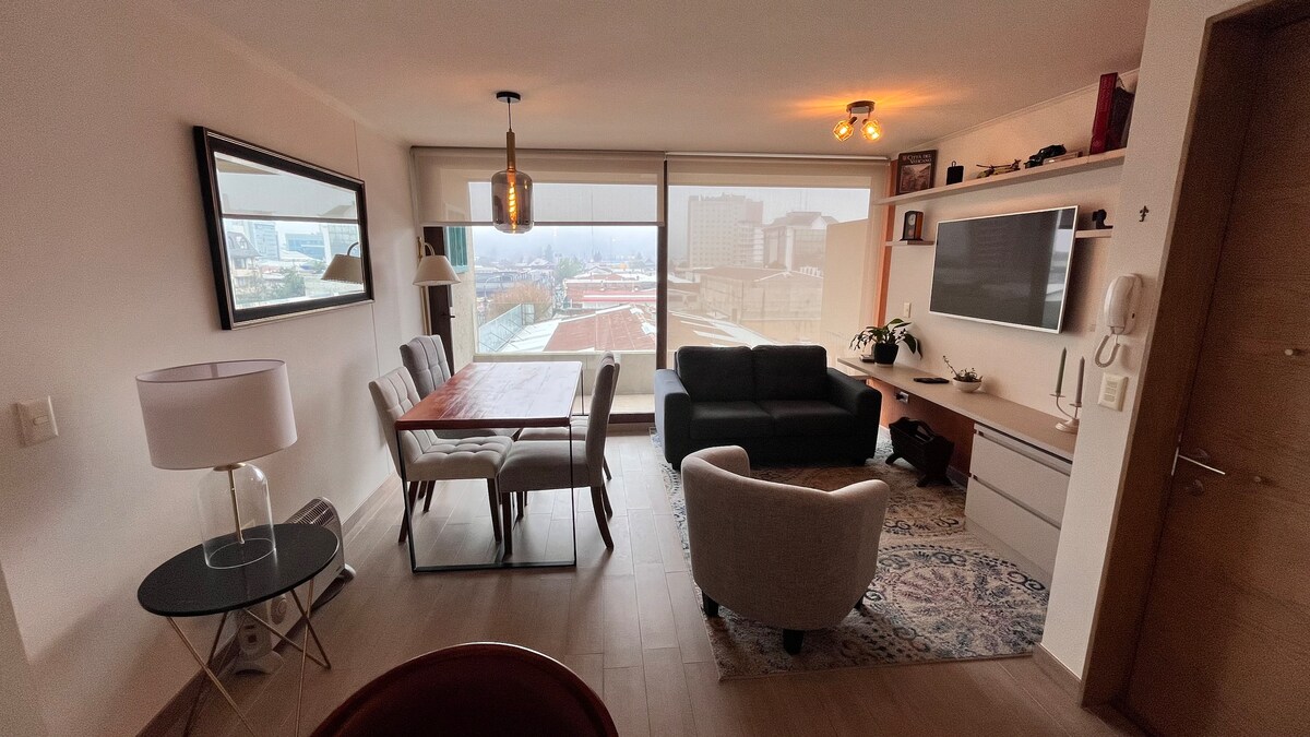 Ubicación inmejorable en la ciudad. Depto para hasta 4 personas, equipado y acogedor. Calefacción por aire acondicionado, Termopanel, TV en sala y dormitorio, WIFI por fibra óptica y cerradura digital. A tres minutos caminando del Mall, restaurantes y lugares entretenimiento. Estacionamiento techado. Equipado con todo lo necesario para una estadia excepcional, cuenta con secador de pelo, tostador, lavadora y secadora. Cuenta con terraza cerrada y ventanas termopanel.