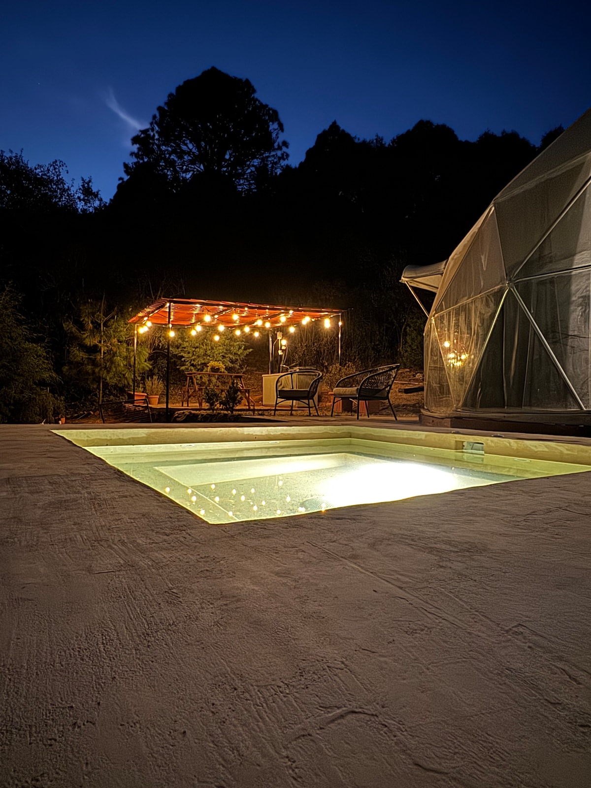 Glamping privado y acogedor en medio de la naturaleza, ubicado a solo 15 min de Malinalco y 20 min de Tenancingo. Ideal para parejas que buscan tranquilidad, privacidad y desconexión, este espacio es perfecto para una escapada romántica o unos días de descanso lejos de la ciudad. El glamping está equipado con cocina, baño, cama queen size, sofá cama y se encuentra rodeado de árboles, creando un ambiente natural y relajante. Cuenta con jacuzzi privado, ideal para relajarse y disfrutar del entorno