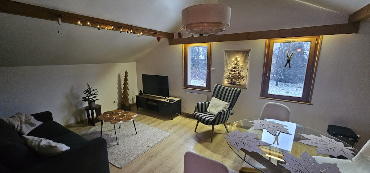 Discover our preserved landscapes from this charming, freshly renovated and fully equipped T2 in the small town of Saint Amé. Close to Remiremont, lakes, ski slopes, and a stone's throw from the cycle path. Close to many restaurants and local shops, where you can discover the specialties of the region. For hiking enthusiasts, the trails of the Massif des Vosges offer breathtaking views of the surrounding nature, with trails suitable for all levels.