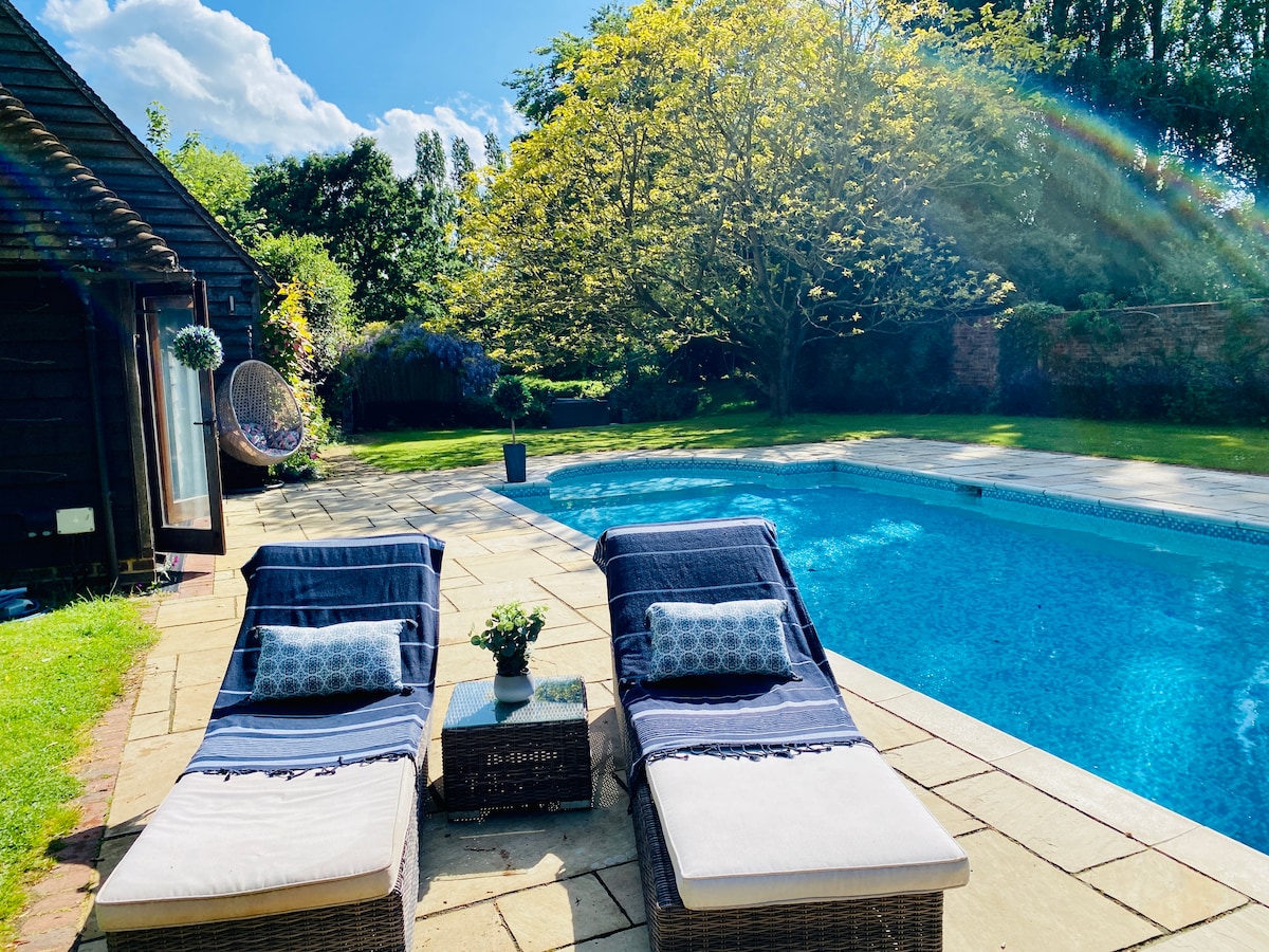 Set within a beautiful and serene private garden, this charming poolside cabin provides a romantic escape featuring a four-poster bed and an en suite wet room. Outside, couples can enjoy an PRIVATE UNSHARED heated swimming pool, sun loungers, and a hammock for relaxation. The outdoor dining area, overlooking a picturesque private moat, is ideal for al fresco dining under the stars. Known as the setting for many marriage proposals, this enchanting retreat is returning to Airbnb for 2025.