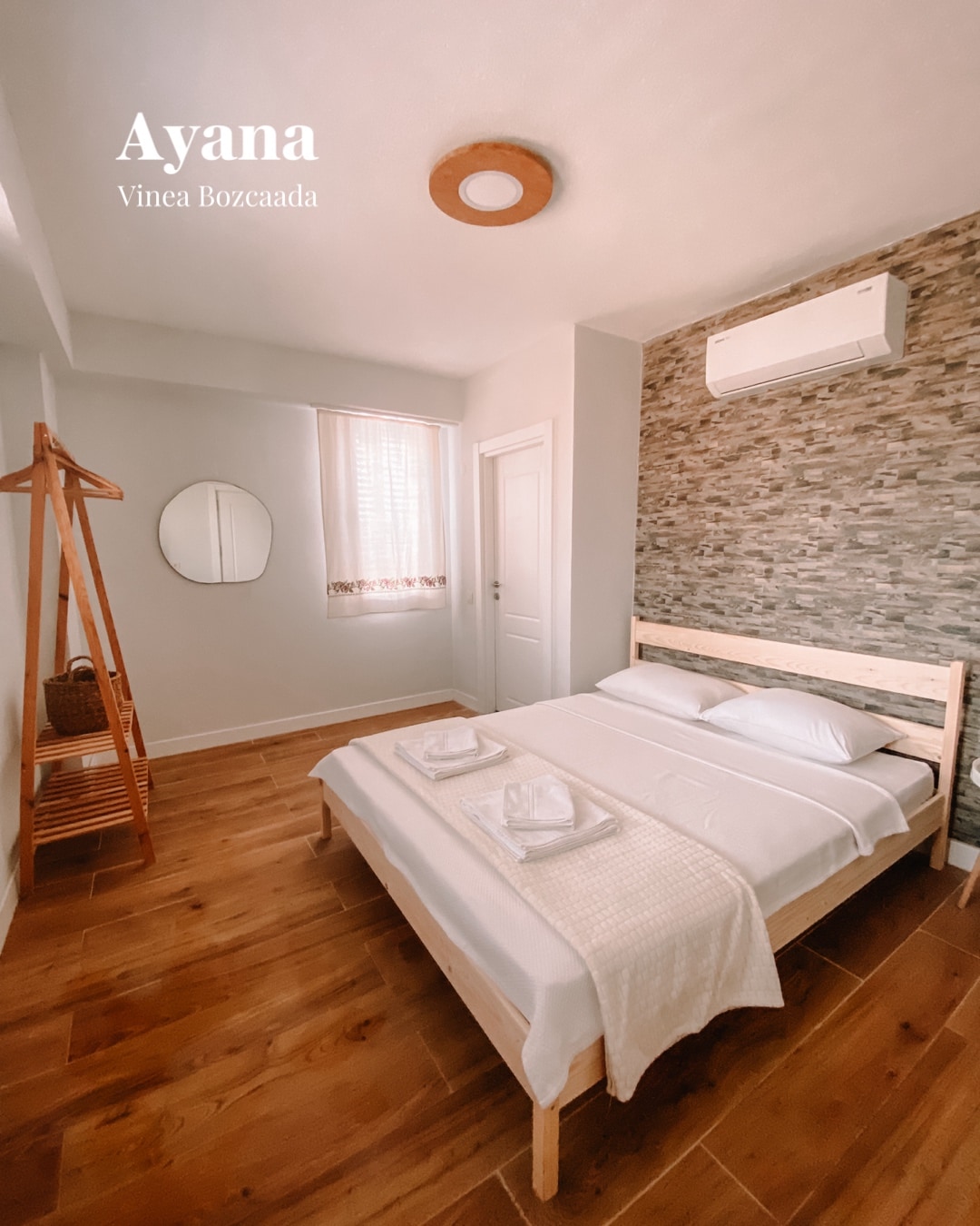 Yaşamın kaosundan uzaklaşıp doğanın içinde nefes alacağınız 10 odalı bir ada oteli Vinea; sakin, huzurlu, hayvan dostu :) "Ayana" odamız iki kişi konaklamaya uygun olarak tasarlanmıştır ve üç katlı binamızın giriş katındadır. Bir çift kişilik yatak bulunan standart çift kişilik odalarımızdandır. Tüm odalarımızda kendine ait özel banyo, klima ve minibar bulunmaktadır. Ayrıca kahvaltı servisini de yaptığımız bahçemiz ve çim alanlardaki şezlonglarımız tüm misafirlerimiz içindir.
