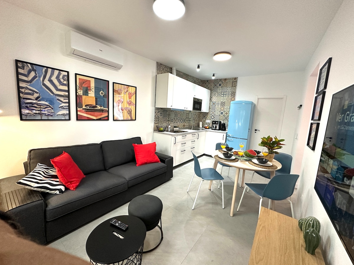 El alojamiento es exterior y luminoso. Equipado con todo lo necesario para que su estancia sea cómoda y agradable. Consta de un dormitorio con cama de matrimonio, cocina americana, abierta al salón y comedor ,totalmente equipada con gran variedad de electrodomésticos como microondas, batidora, exprimidor, cafetera, hervidor, sandwichera, plancha( y tabla de planchado), lavadora. El salón es muy agradable con sofá-cama y Smart TV 4K, pantalla plana. Incluye ropa de cama y toallas. WIFI gratuita. Reserva mínima 2 días. Estaremos encantados de atenderles de 9:00 a 14:00 y de 17:00 a 20:00 horas. Junto al casco histórico y el Estadio Heliodoro Rodríguez López. Este piso también está cerca del Parque Municipal García Sanabria y a menos de 1,5 km del Auditorio y el Parque Marítimo César Manrique. Las Teresitas está a 15 minutos en coche. Es ideal para conocer la ciudad a pie. Buena comunicación autobuses, taxis, próximo a parada de tranvía. A escasos metros del apartamento hay un parking público 24 horas .