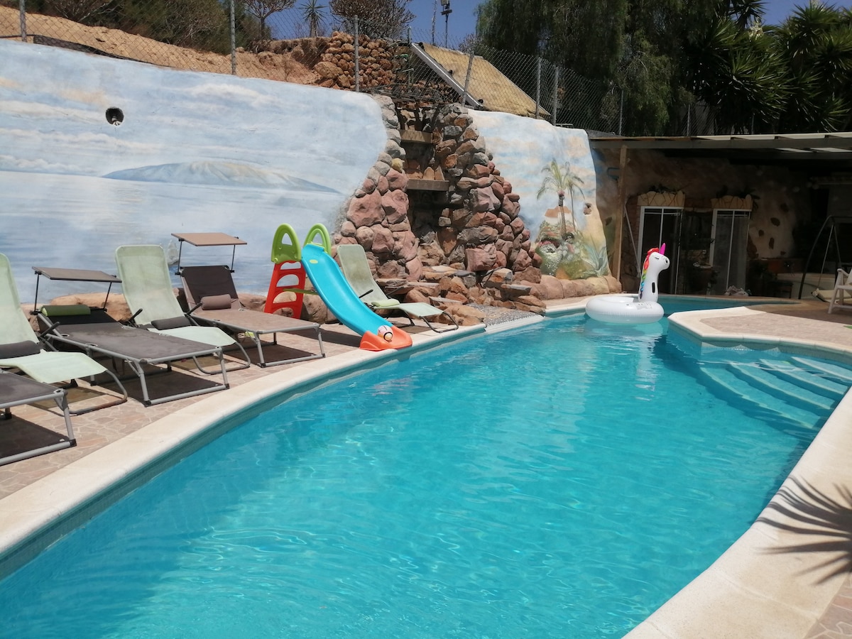 100% PRIVATE !! TENERIFE’S hidden gem in rural location (Los blanquitos) ( 15 min from airport ) Relax in your own Nordic jacuzzi bathtub in a cave under the stars, the water is heated by wood.. This unique Cavehouse has everything you need for a short or long visit. Swimming pool magical gardens,Wood oven-bbq-kitchen-washing machine-fast WIFI-pool table-NETFLIX Everything is private *host live on site in separate property* *only people on reservation can access premises*g