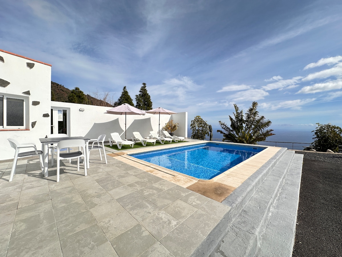 别墅设有恒温泳池,可欣赏海景。安静的区域