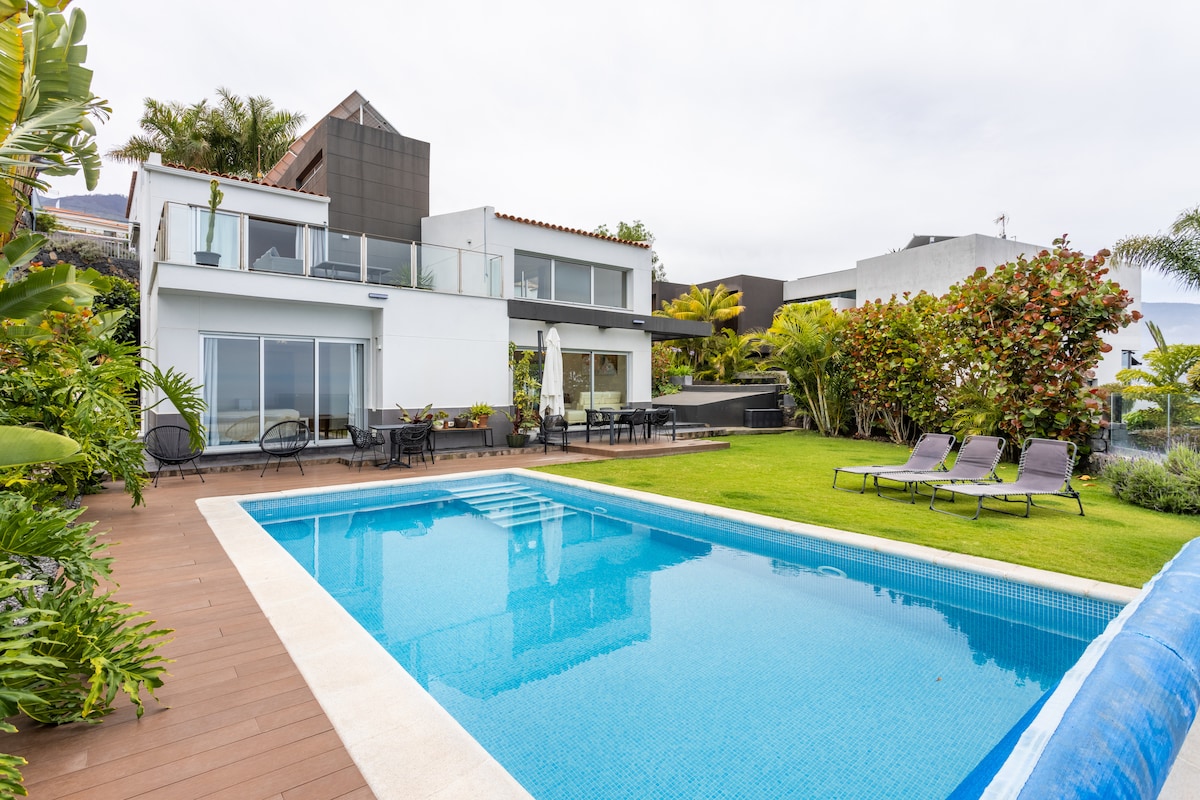 Luxus-Poolvilla mit großem Garten und Meerblick