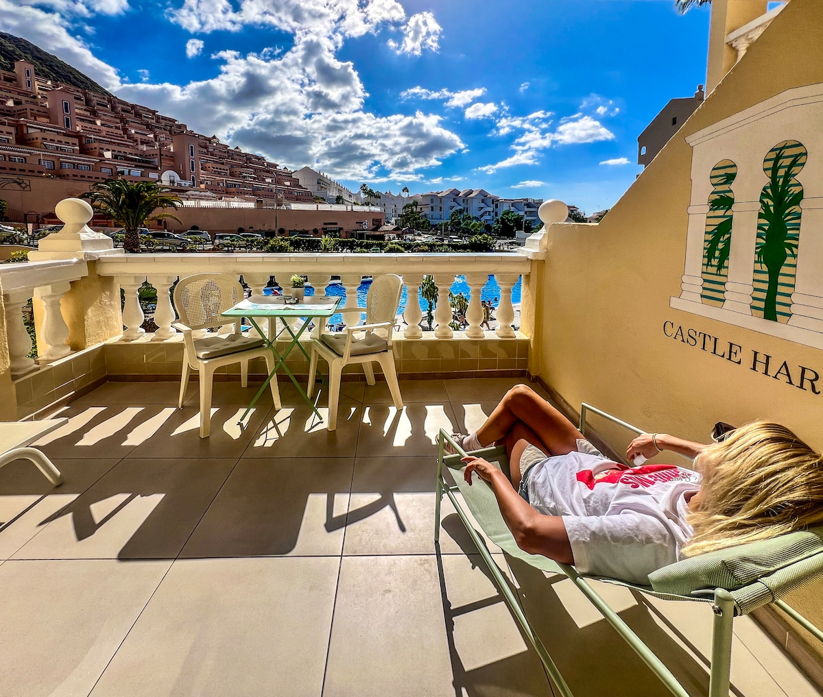 Experience the comfort in our Mint Studio (open plan layout), located in the popular Castle Harbour complex in Los Cristianos. ★„The apartment is just like the photos, very clean and tastefully decorated.“ 🌞 Why You’ll Love Our Studio: ✅ King Bed – Sleep in comfort ✅ Sunny terrace – Chill in the sun all day ✅ 50-inch Flat TV – Relax with your shows ✅ Ceiling Fan – Comfort on warm days ✅ Heated Pool – All year round ✅ Parking - Free in complex or nearby street ✅ Cook Zone – Compact kitchen