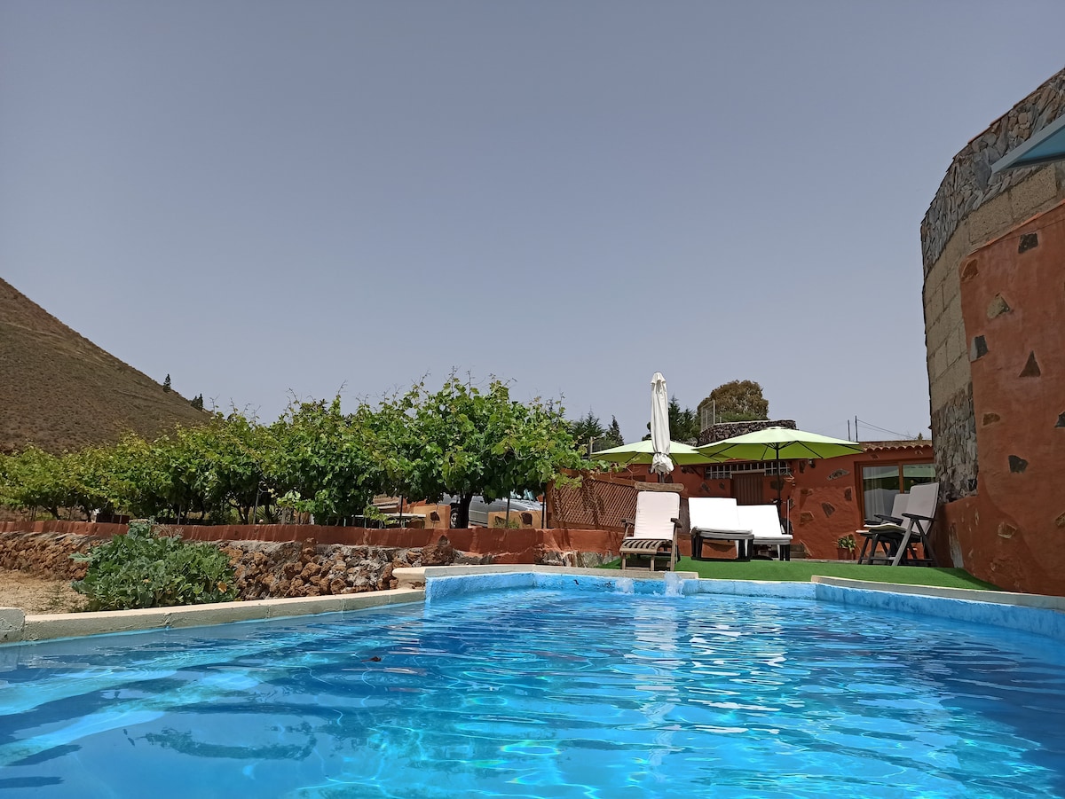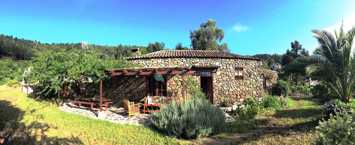 OLD TIPICAL CANARIAN HOUSE IN STONE AND WOOD, The house of 75m2 has 2 Dormts maximum 6 People bathroom living room with fireplace, fully equipped kitchen with appliances, outdoor barbecue. Our house has been completely restored in 2010 and is in the center of a farm of 3000 m2, surrounded by fruit trees, gardens where Privacy, tranquility and privacy are one of its maximum values, only a few neighbors more than 100 meters from home. Ideal for lovers of nature, hiking.