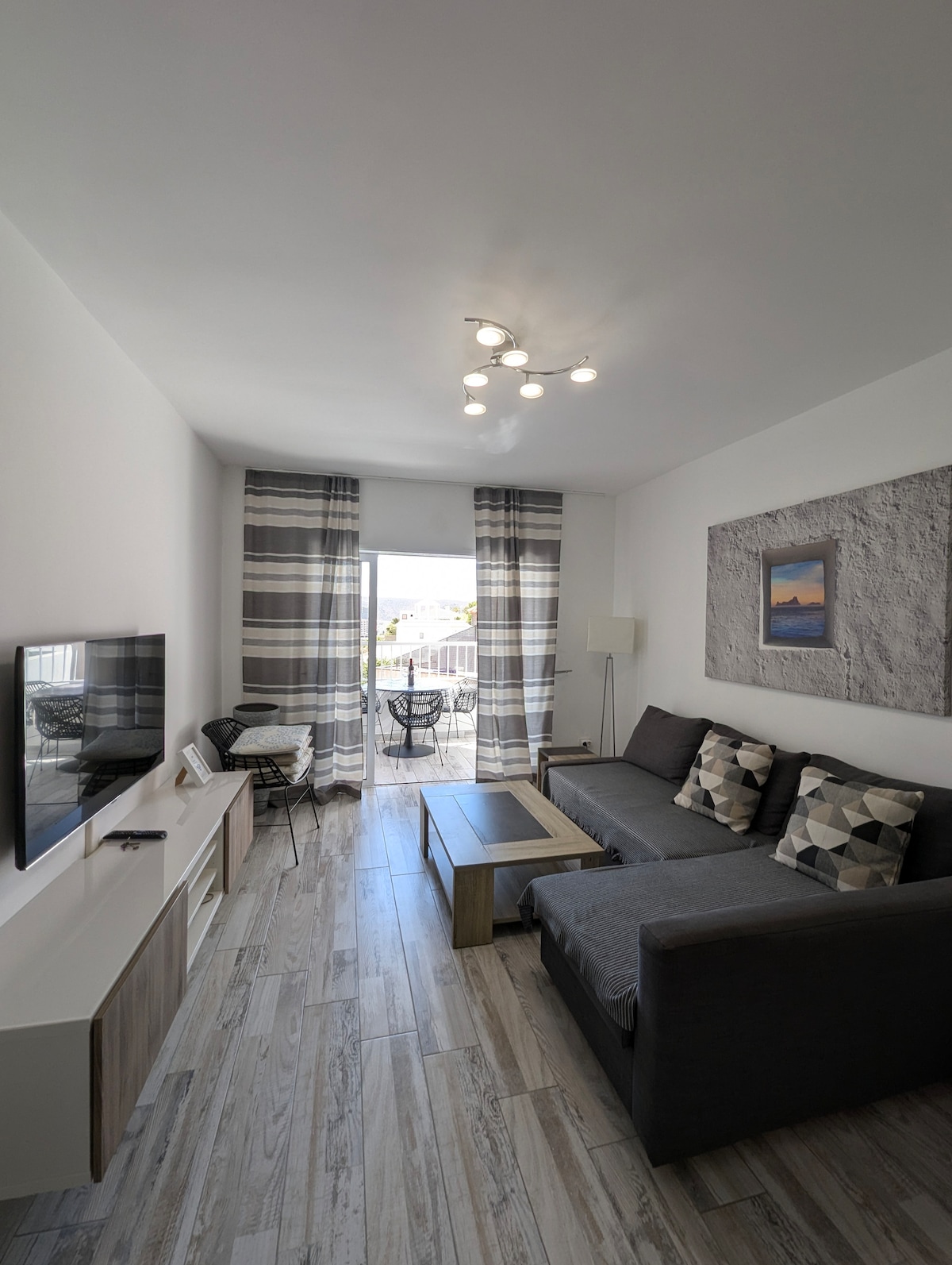 This cozy apartment offers you the experience of relaxing with panoramic views of the sea and a corner of tranquility in the most exclusive area of Costa Adeje. It has a bedroom and a large living room, with ceiling fans, a renovated bathroom and a fully equipped kitchen to prepare your meals enjoying the sea views. When you arrive, a welcome basket with typical products from the island awaits you, which will help make your stay perfect.