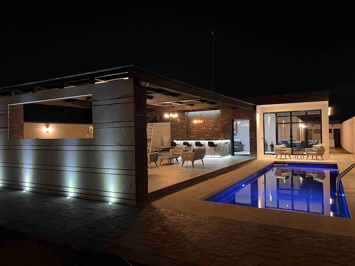 Promo: 3 nights and the 4th is on us. ( Except Christmas and New Year) 600 m² house with garden, heated pool, terrace, grill, 5 en-suite bedrooms, living room with projector, Wi-Fi, pool table, and complimentary kitchen and room assistance. Capacity: 20 guests. Requirement: The person making the reservation must be at least 25 years old