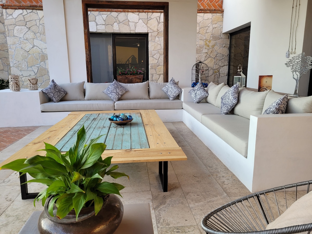 Amplia Casa Moderna super confortable y con amplio jardín solo para los huéspedes donde podrán disfrutar de un ambiente rodeado de naturaleza y sobre todo de gran privacidad , ideal para disfrutar de tu pareja y/o tu familia en un lugar super tranquilo. Estacionamiento para 15 autos, ideal para familia completa, muy cerca del Centro y de los principales Lugares de Eventos.