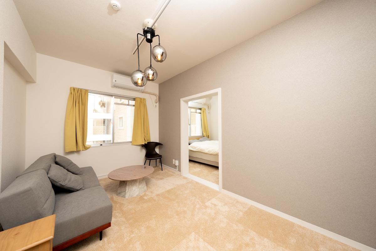 天神南駅徒歩4分 ダブルベッド2台ソファベット1台最大5名 キャナルシティ博多屋台徒歩圏内35㎡