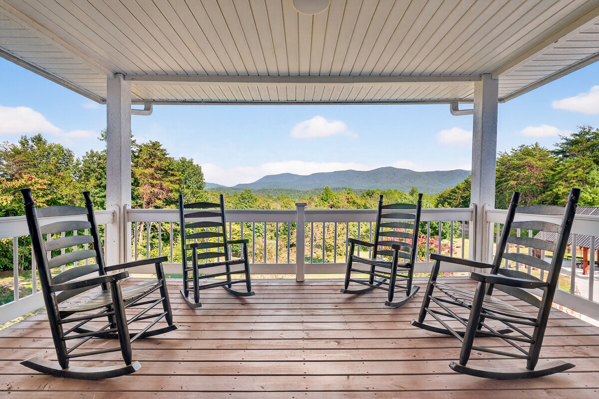 The Long Mountain Suite offers a cozy retreat with breathtaking sunset views of the Mountains. This suite features a queen-bed, and a luxurious bathroom with a jetted tub. Fully ADA compliant. No stairs required. Guests can enjoy their own fireplace, mini fridge, Keurig. The suite is perfect for a romantic getaway or a peaceful escape into nature, just minutes from downtown Dahlonega. This is your own private room and bathroom in our BnB. Amazing homemade breakfasts each AM.