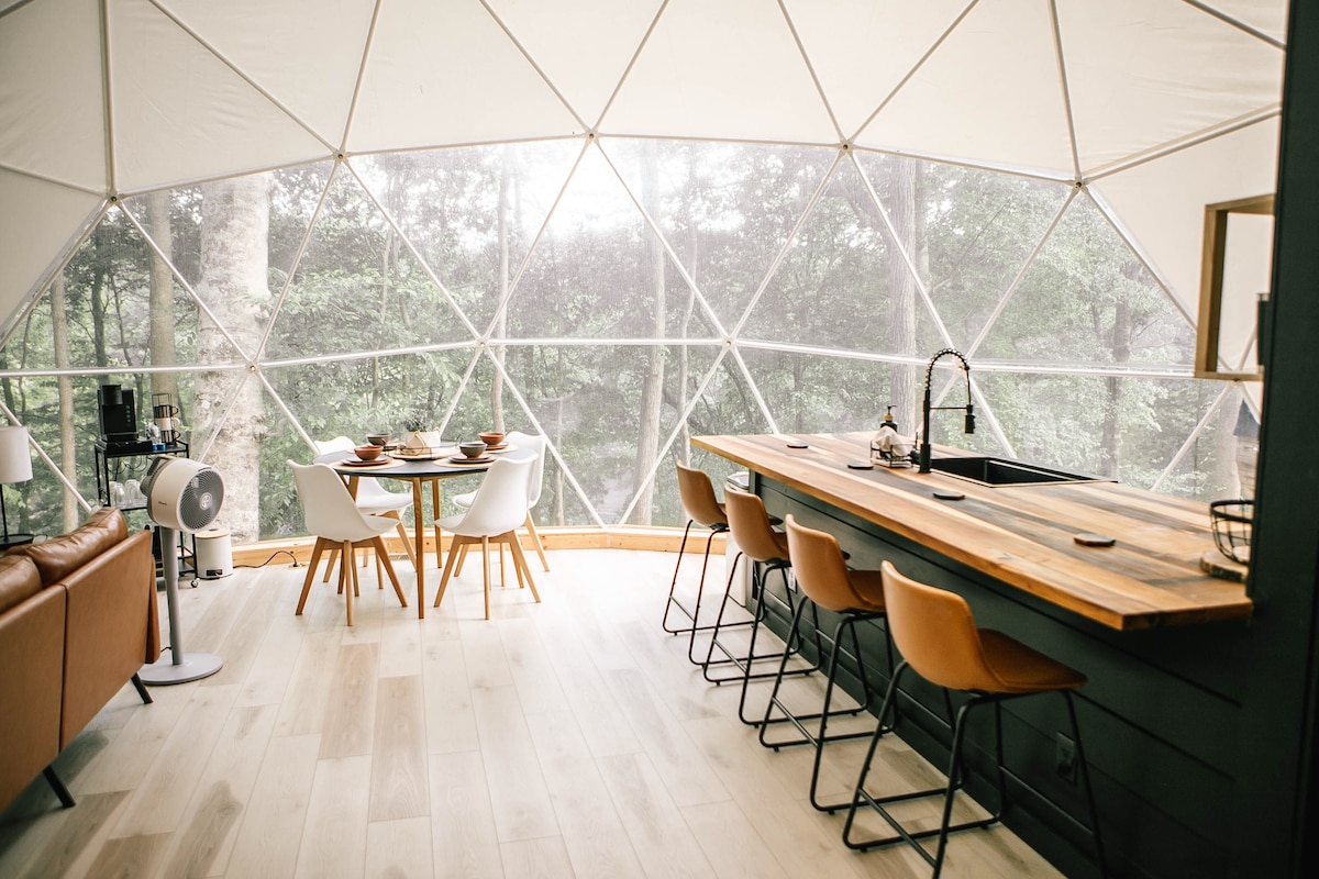 Welcome to our modern sanctuary nestled in the serene woods of Smithville, just a stones throw away from the tranquil waters of Center Hill Lake. Solace Sphere offers a contemporary twist on the classic dome design, featuring a one bedroom layout with a loft, complemented by a rejuvenating waterfall shower and top-of-the-line appliances for your comfort and convenience. We are located 1-1/2 hours from Nashville and 3 miles from Pate’s Ford Marina Bar and Grill. We hope you find your Solace.