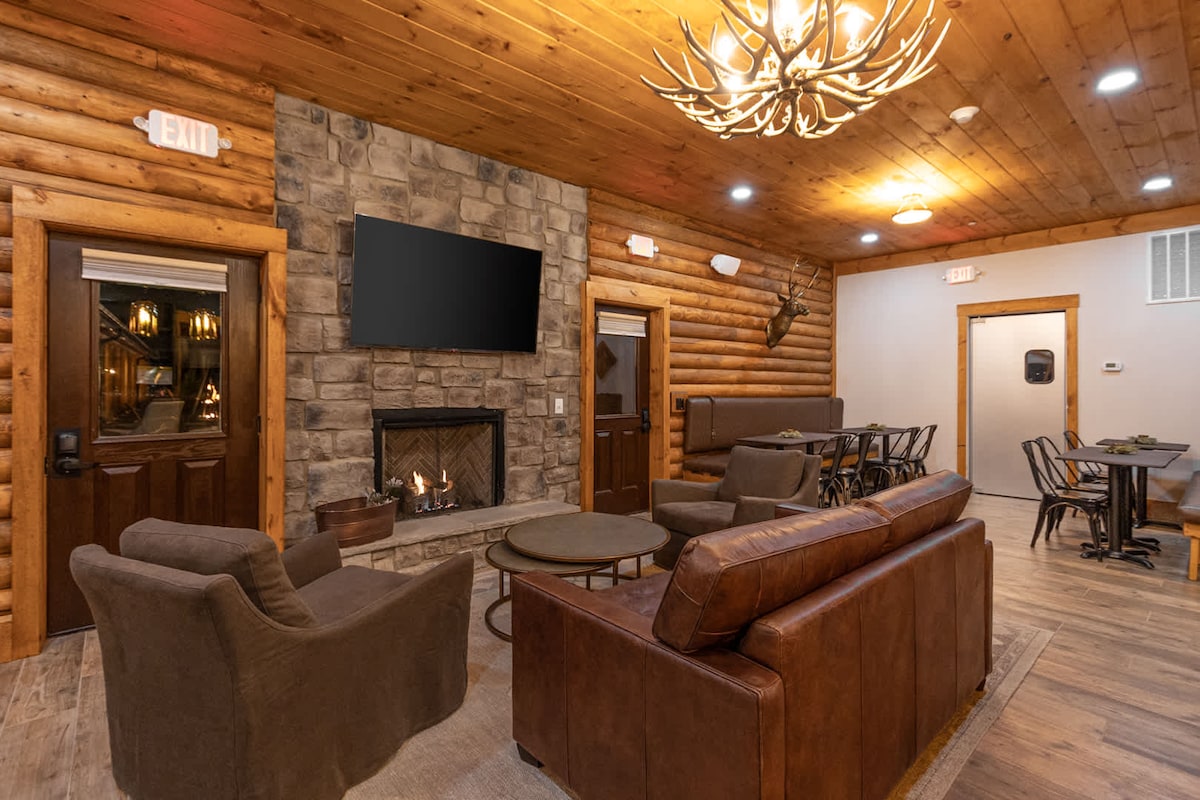 The Timber at Holly Branch's accessible ADA Premium King Room features rich fabrics and tasteful furnishings paired with natural walls and metal details. A luxury, oversized shower with rain showerheads makes this sophisticated room a luxurious experience. We offer a streamlined check-in experience. A personalized door code for your room will be sent to you a few days before your stay, so you can skip the front desk and head straight to your room.