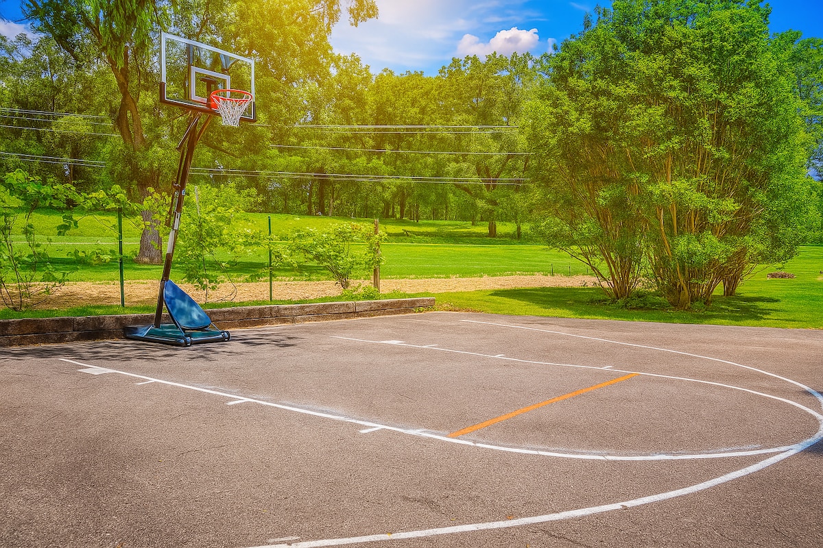 带游戏阁楼、热水浴缸和篮球场的小木屋