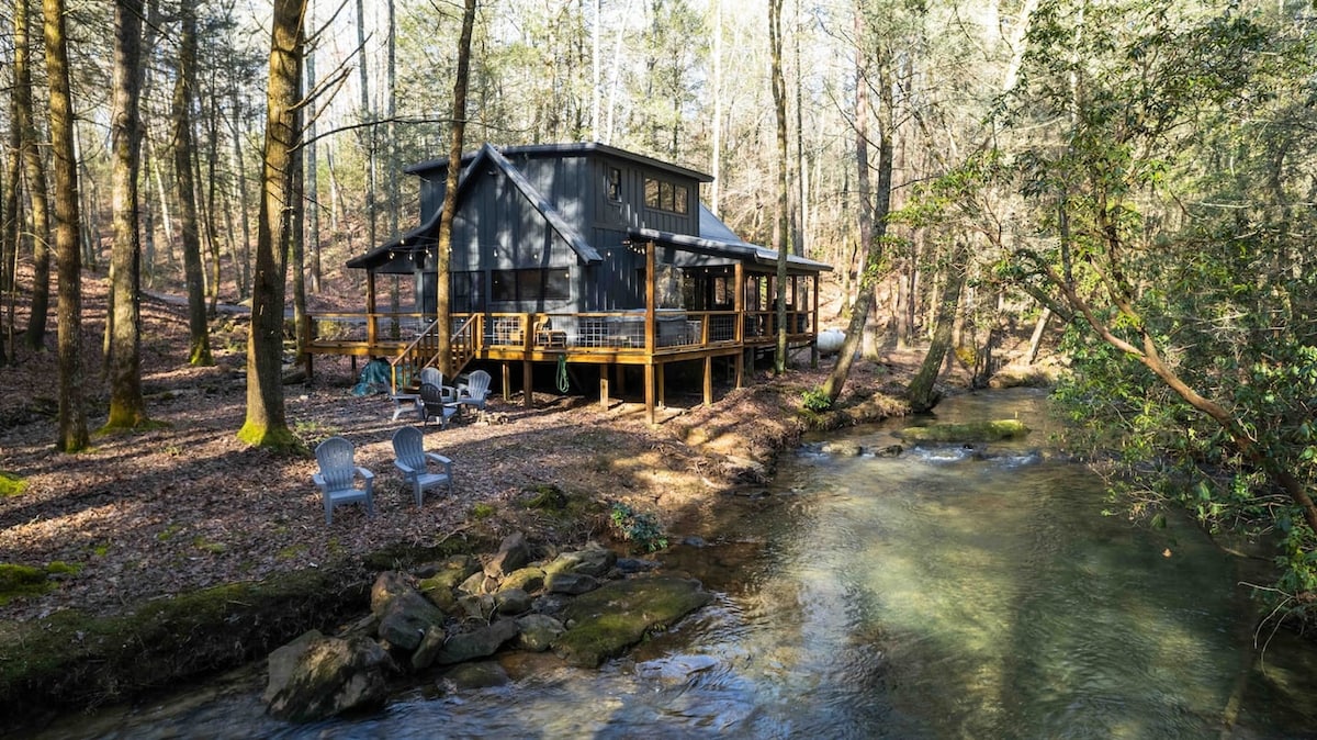 Unplug, unwind, and immerse yourself in nature at this private creekside cabin. Nestled deep in the woods and surrounded by trees and birdsong, this peaceful retreat is the perfect escape from everyday life—yet only 35 minutes from downtown Chattanooga. Step outside and you’ll hear the gentle flow of the creek just steps away. Sip your morning coffee on the porch, soak in the hot tub under the stars, or simply enjoy the quiet serenity of the forest. This cabin was made for slowing down.