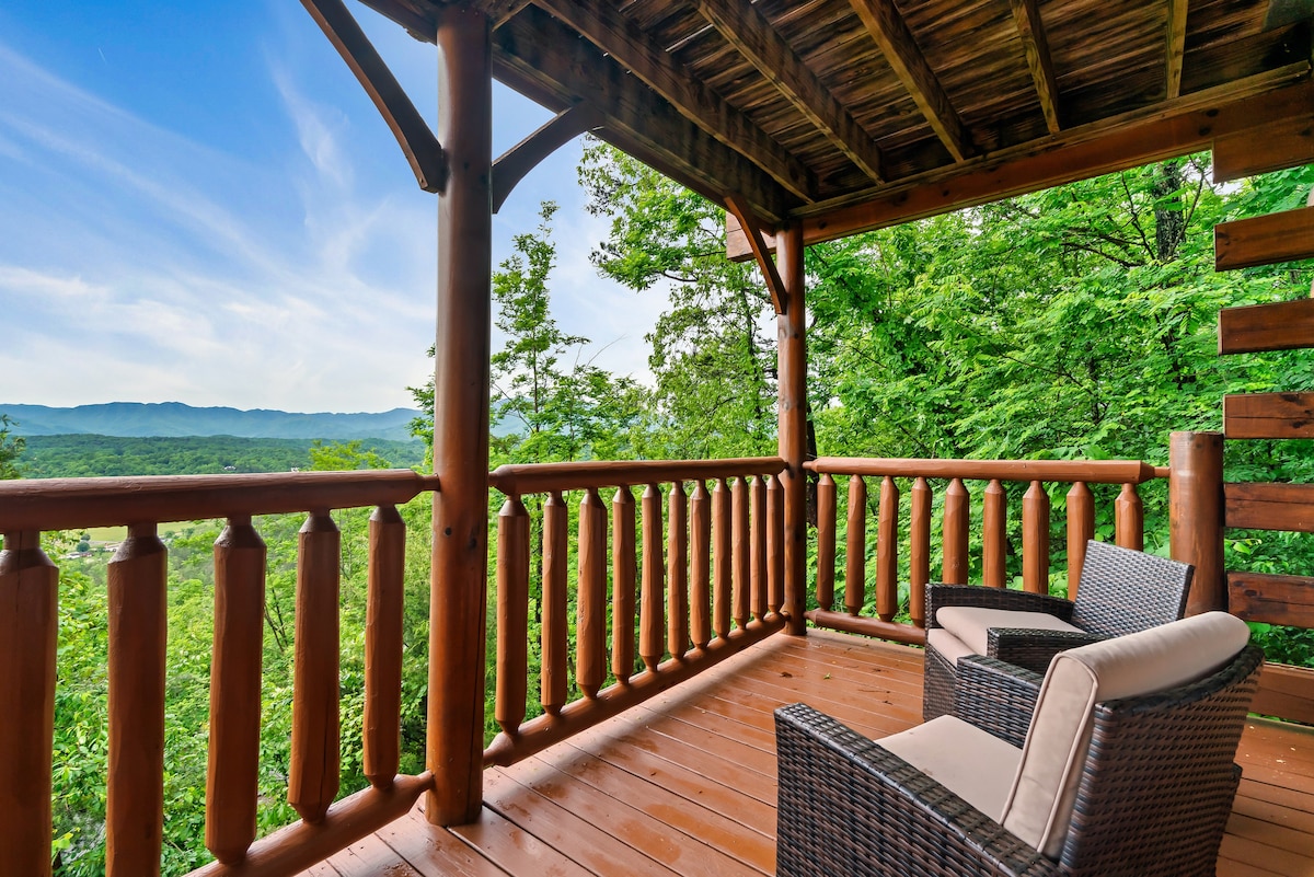 "Now and Forever" is a rustic, cozy log cabin with stunning views of the Smoky Mountains and the surrounding area. It is conveniently located minutes from Dollywood, Pigeon Forge, Gatlinburg, the Ripken Experience and the Smoky Mountains. This 2 BR, 2 full BA cabin is great for relaxing, but has all the amenities to make your vacation great: hot tub, pool table, air hockey table, full kitchen, grill, parking, neighborhood pool and gym, TVs, Wi-Fi and much more.
