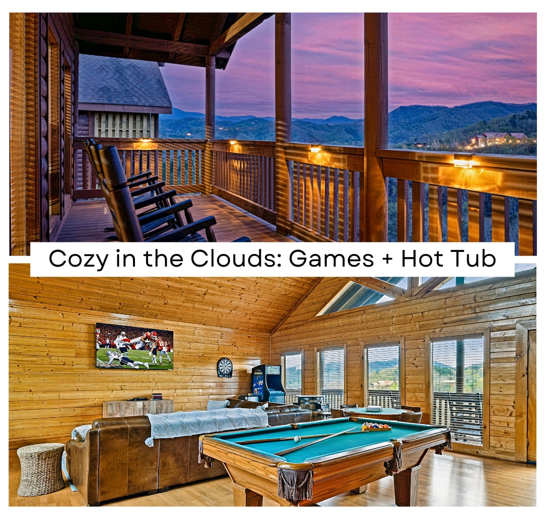 ⛰大烟山顶级景观🌲加🌲大双人床套房,🌲真正的原木小屋,🌲火坑,🌲 3层甲板,🌲热水🌲浴缸,台球桌,僻静⛰