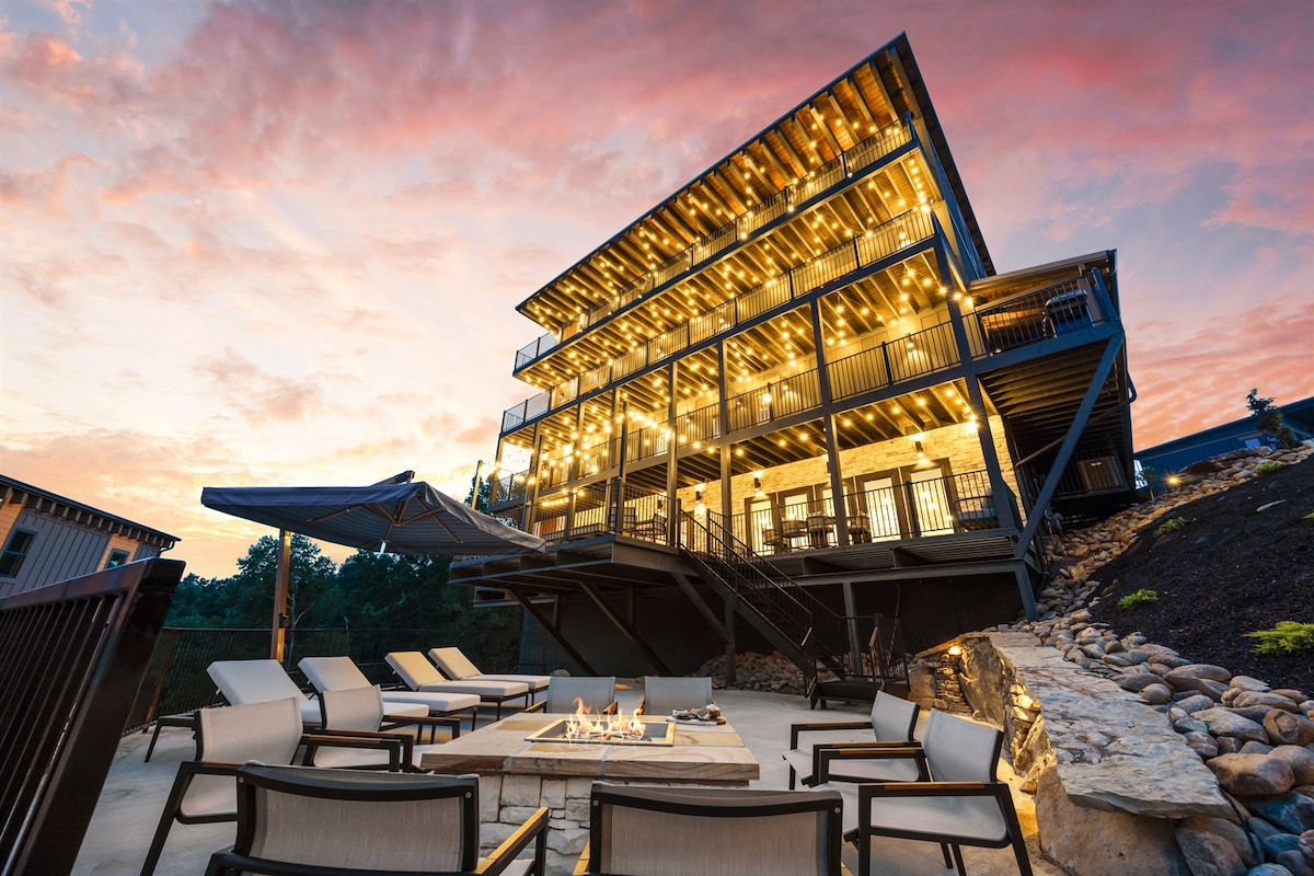 IG/FB/TikTok: SixDiamondsCabins VIEWS!! Only minutes to everything––CUSTOM LUXURY MOUNTAINTOP villa designed by renowned architects. 2+ acres, 5800+ SQFT & many decks/sun room facing Mt LeConte. Brand new 7-person HOT TUB, 100'' projector MOVIE THEATRE, 7 TVs, GAME ROOMS w/ pool, pac-man, ping-pong, golden tee, pinball, buck hunter & cornhole, Harry Potter dungeon, bluetooth music, 3 FIREPITS/FIREPLACES, comfy beds, high-speed WiFi, parking, & easy roads.