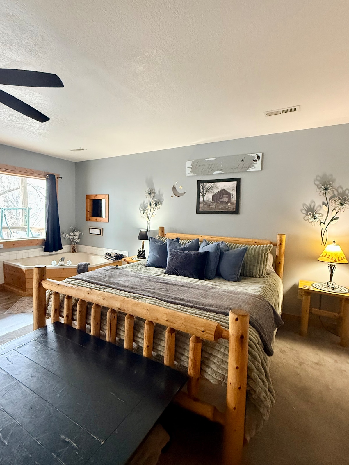 私人单间公寓原木小屋!热水浴缸、壁炉、凉爽!